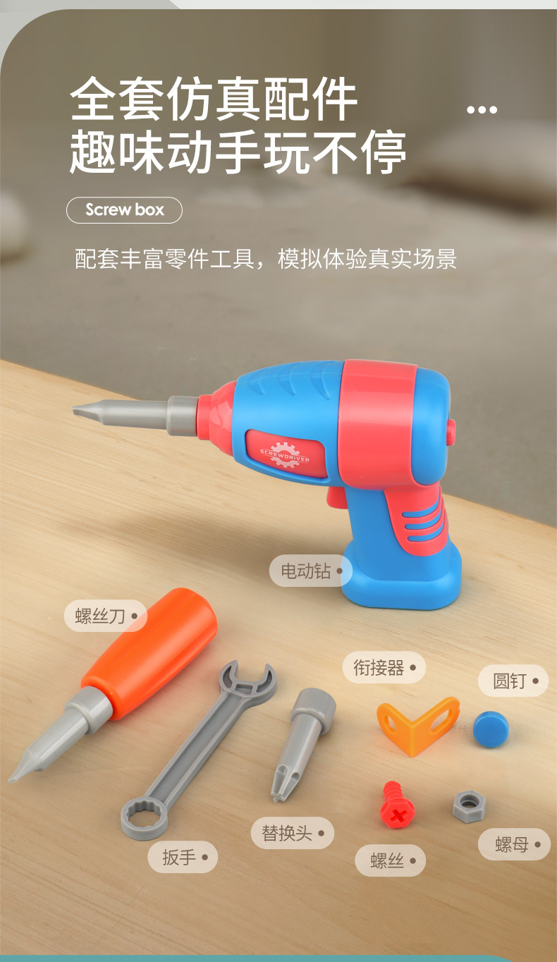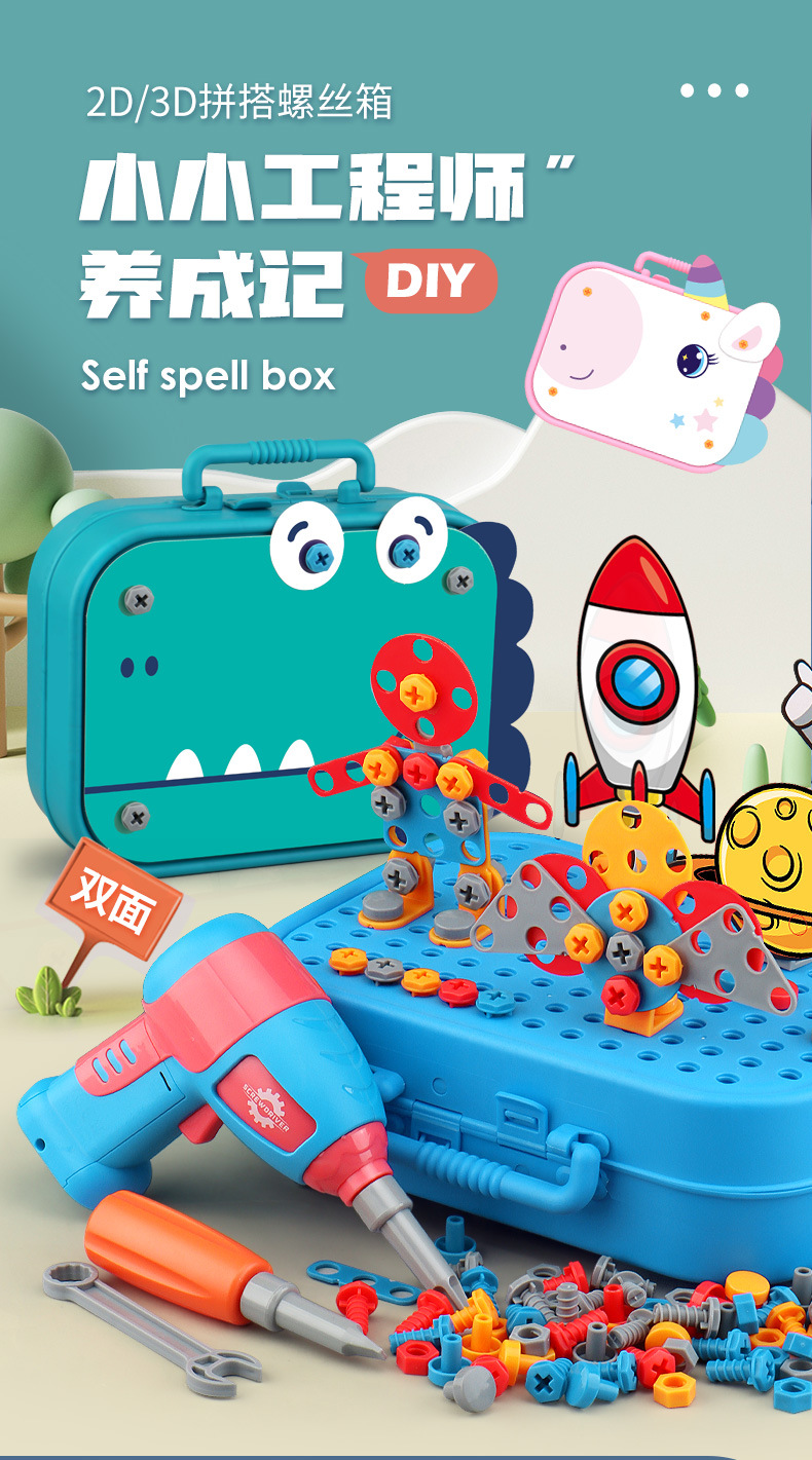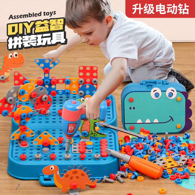 Детский ящик для инструментов для сборки винтов, электрическая дрель, детские практические развивающие игрушки, тренировка концентрации для мальчиков