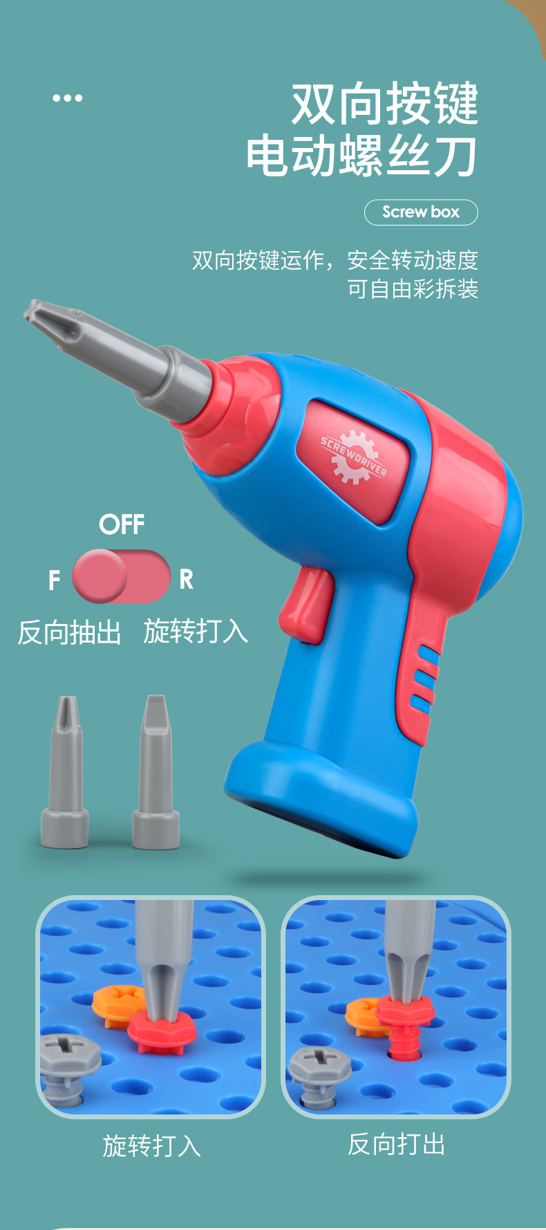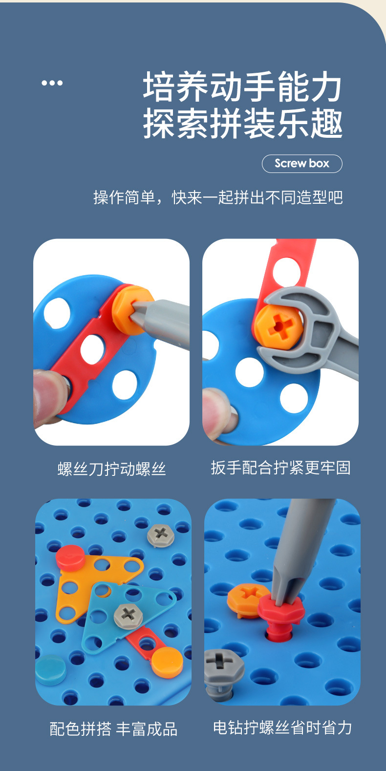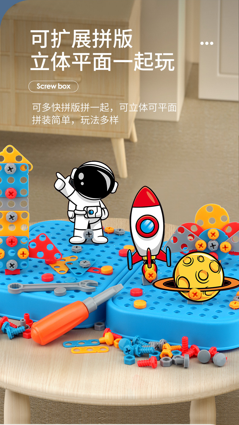 Детский ящик для инструментов для сборки винтов, электрическая дрель, детские практические развивающие игрушки, тренировка концентрации для мальчиков
