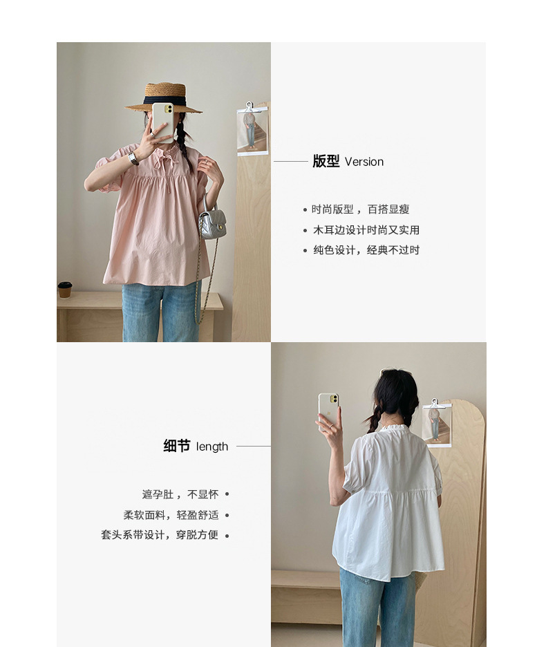 Корейские ежедневные поездки для беременных женщин с уменьшением возраста, однотонные рубашки, летние новые удобные дикие беременные с короткими рукавами, повседневные топы