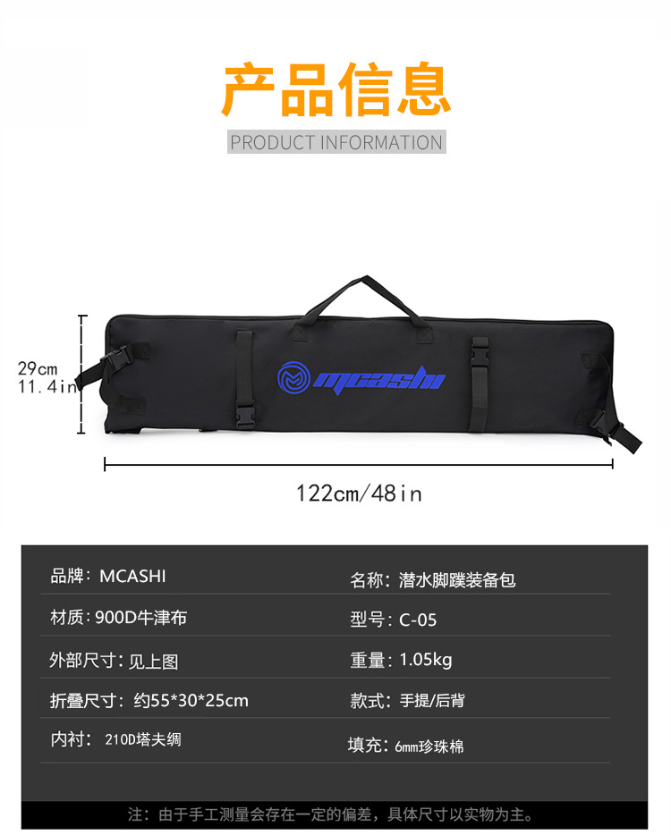 可装加长脚蹼如自由潜水脚蹼或者C4等
