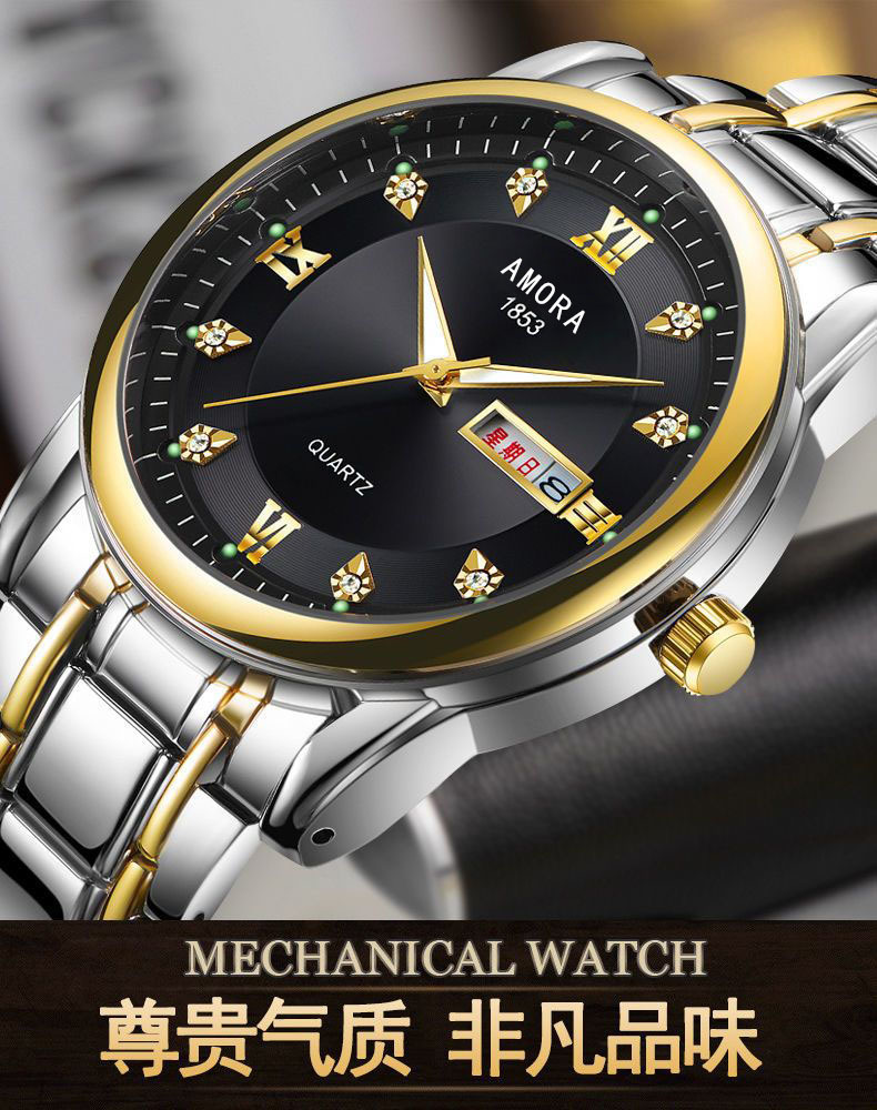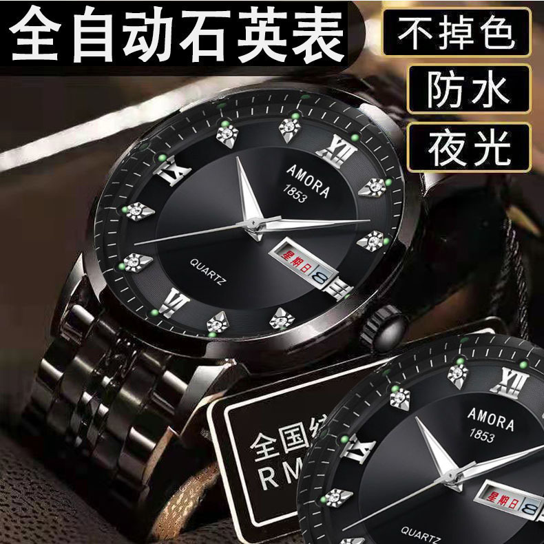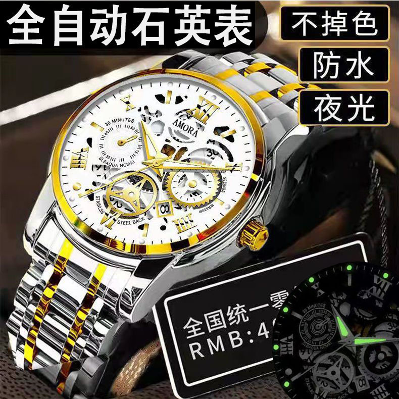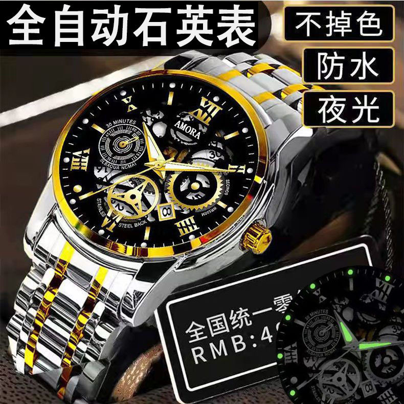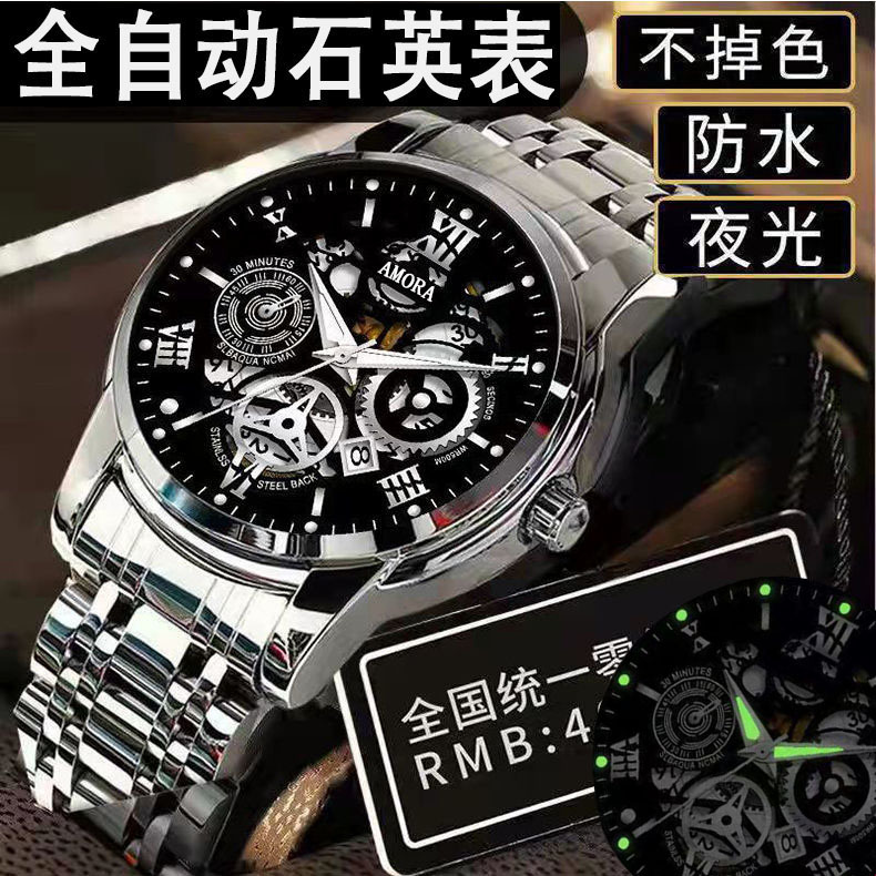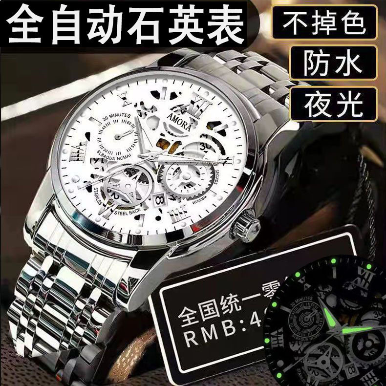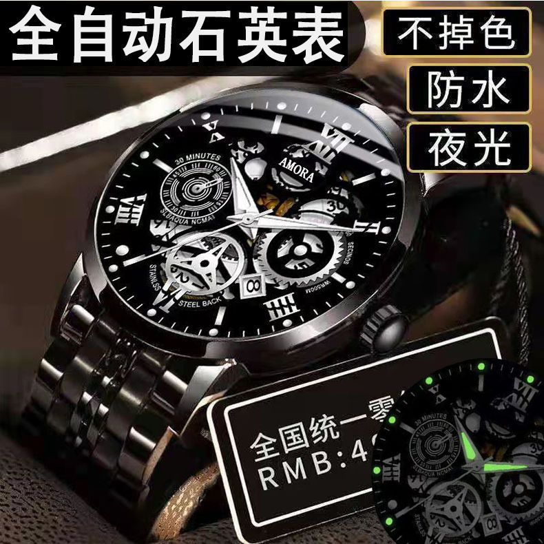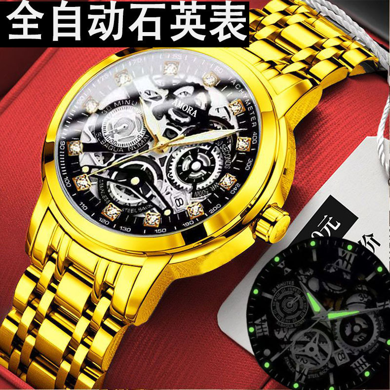 Xiangshiman автоматический механизм немеханические мужские часы двойной календарь ночный свет водонепроницаемый бизнес стальные кварцевые часы