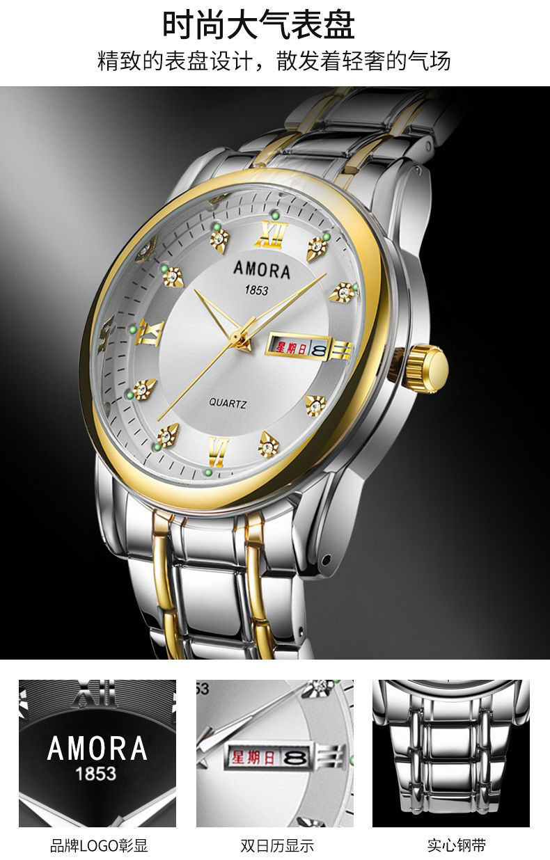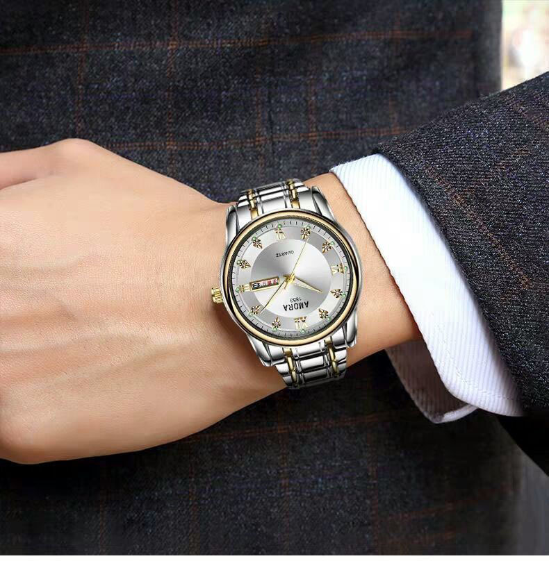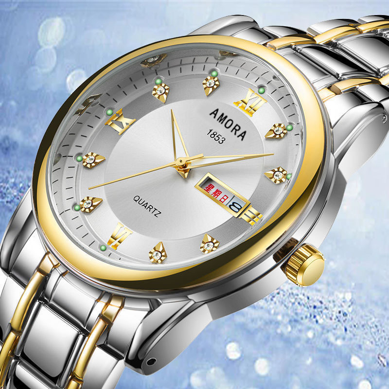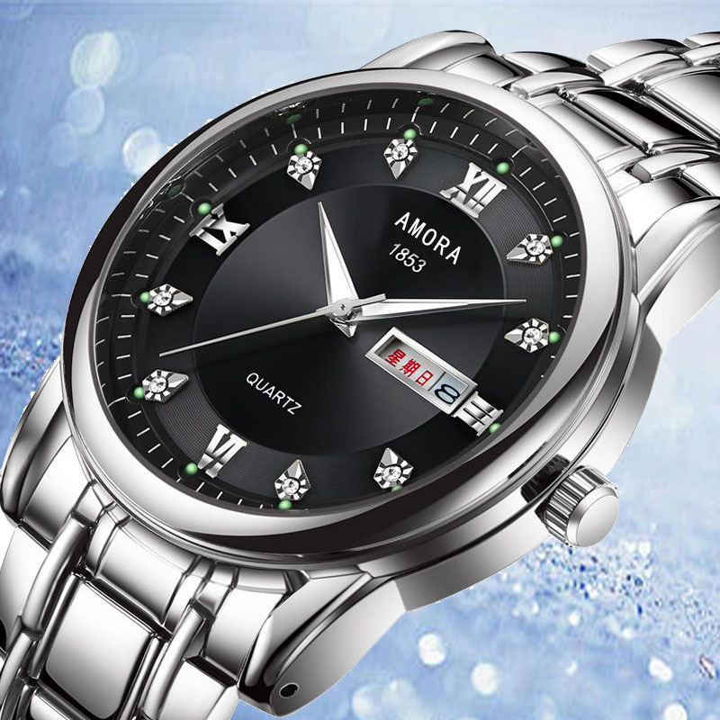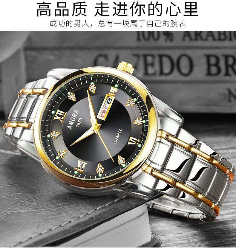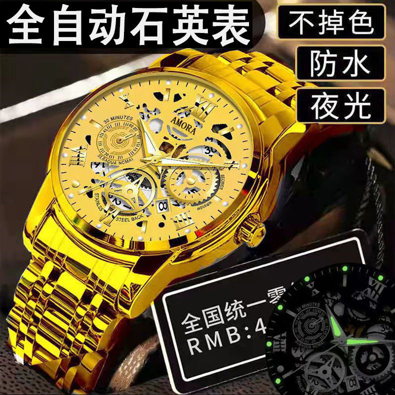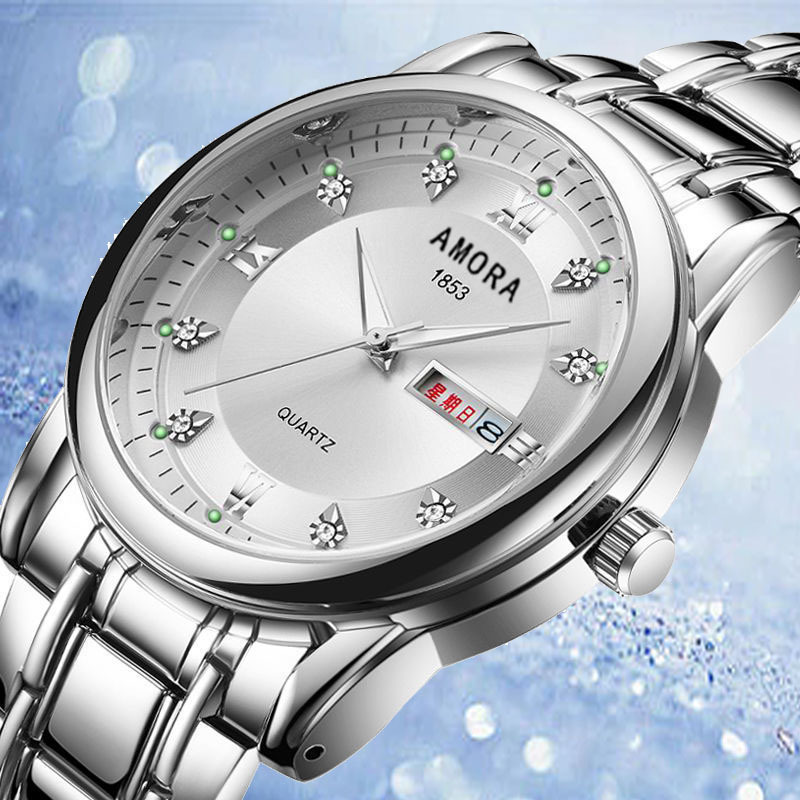 Xiangshiman автоматический механизм немеханические мужские часы двойной календарь ночный свет водонепроницаемый бизнес стальные кварцевые часы