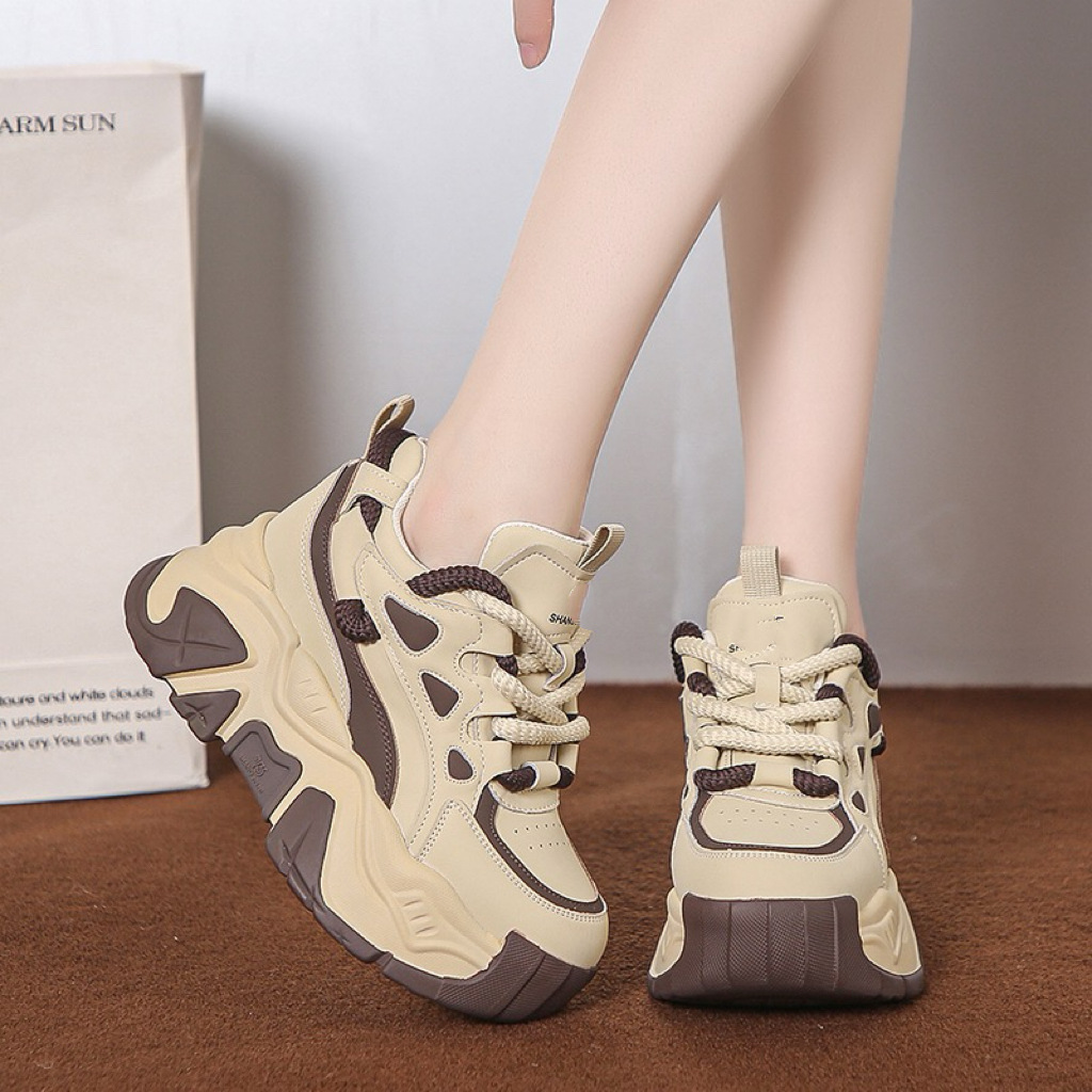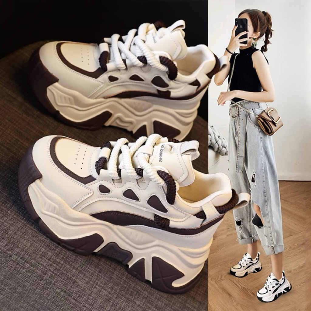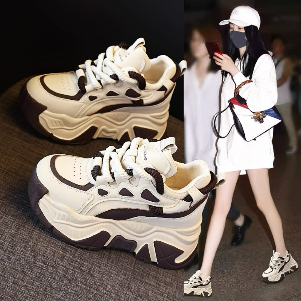 Женские платформенные кроссовки на толстой подошве, модный стиль весны 2025 года, увеличивающие рост, универсальные, стройнящие, повседневные.
