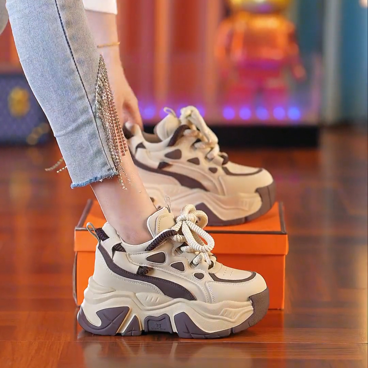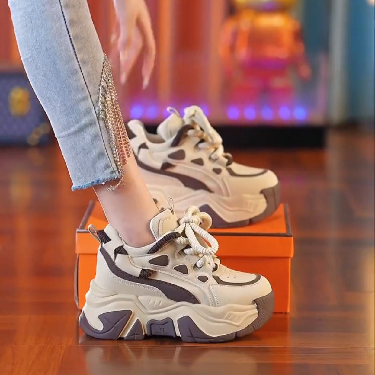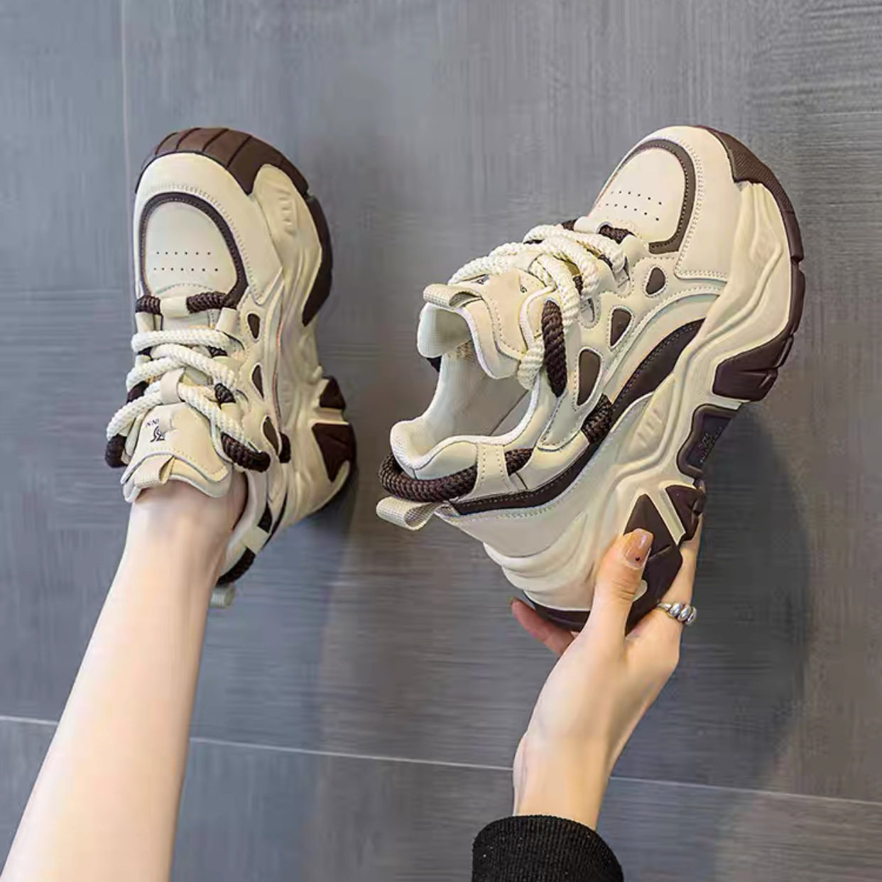 Женские платформенные кроссовки на толстой подошве, модный стиль весны 2025 года, увеличивающие рост, универсальные, стройнящие, повседневные.