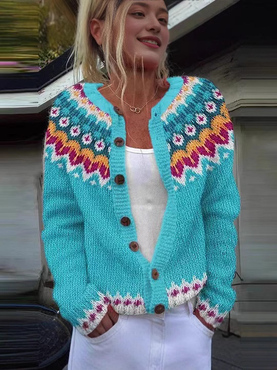 Новый амазонка Европа-Европа трансграничный национальный стиль жаккардовый свитер свитер кардиган wish Горячая продажа свитер женская куртка