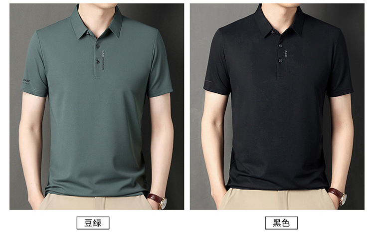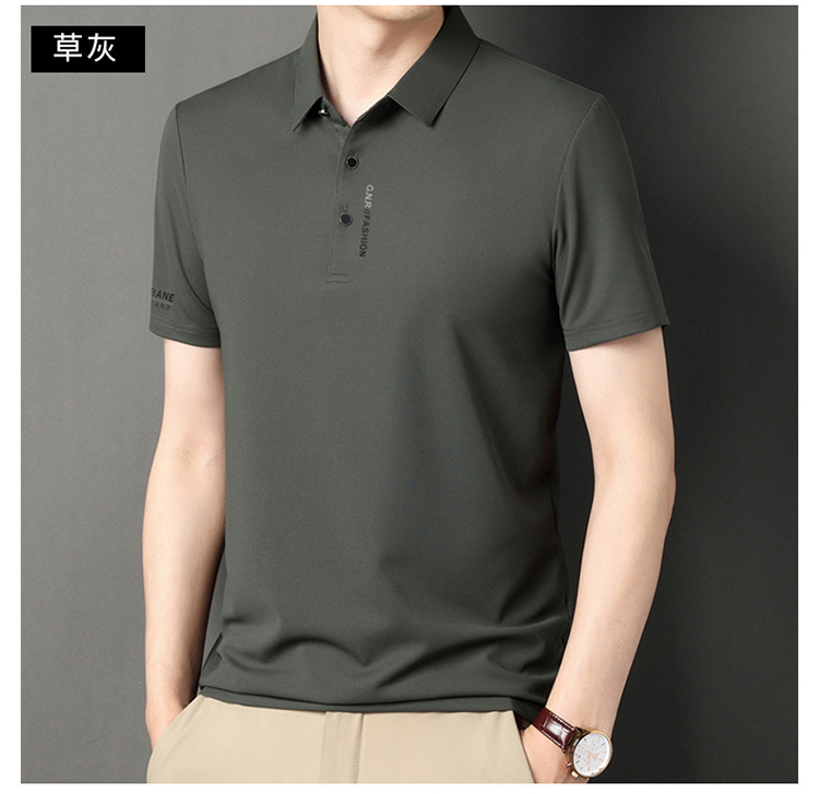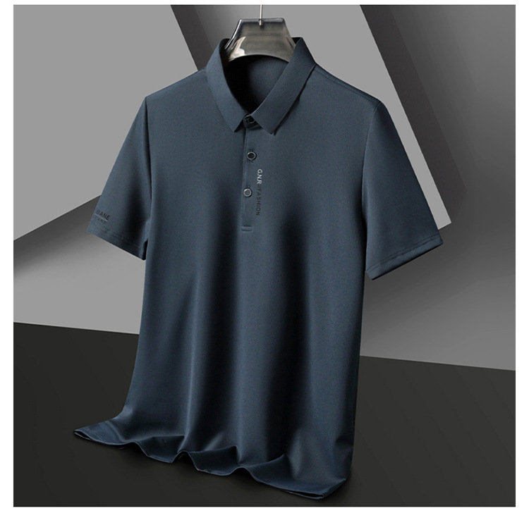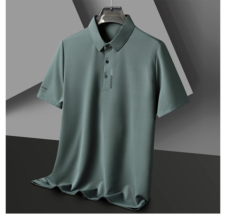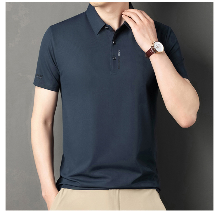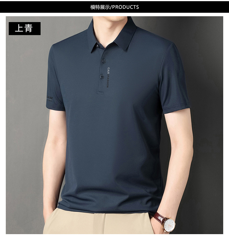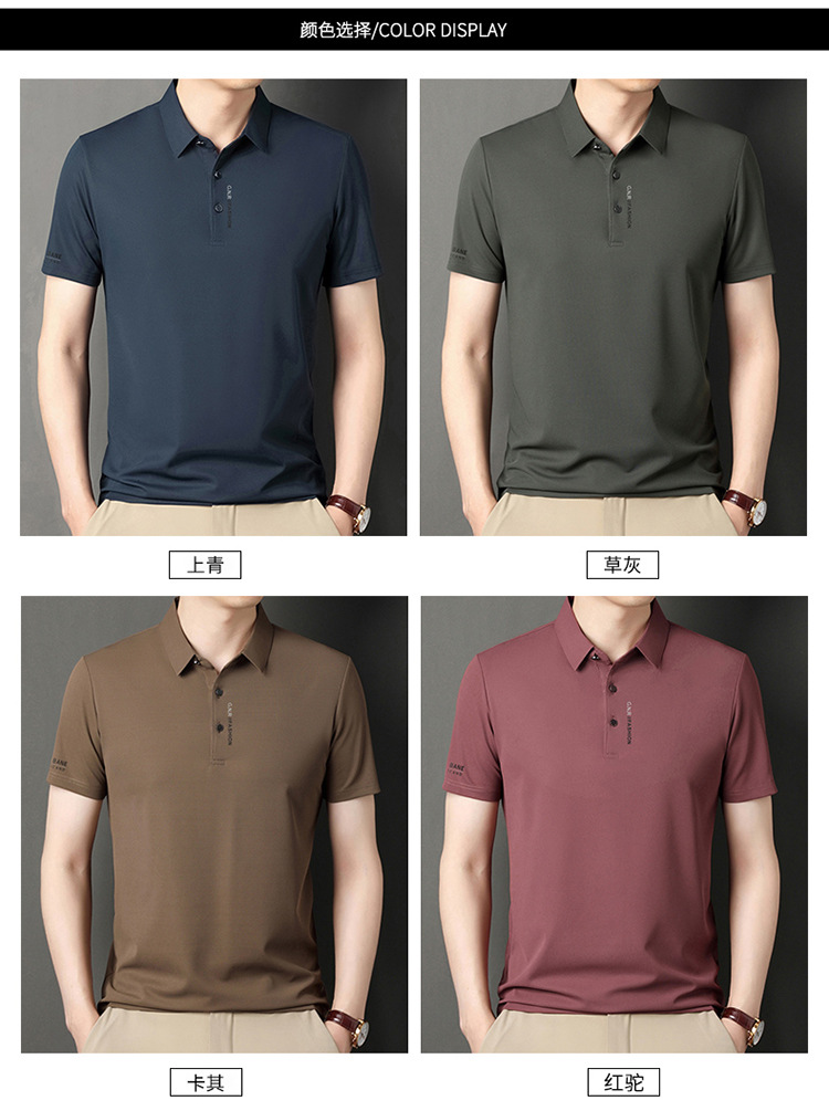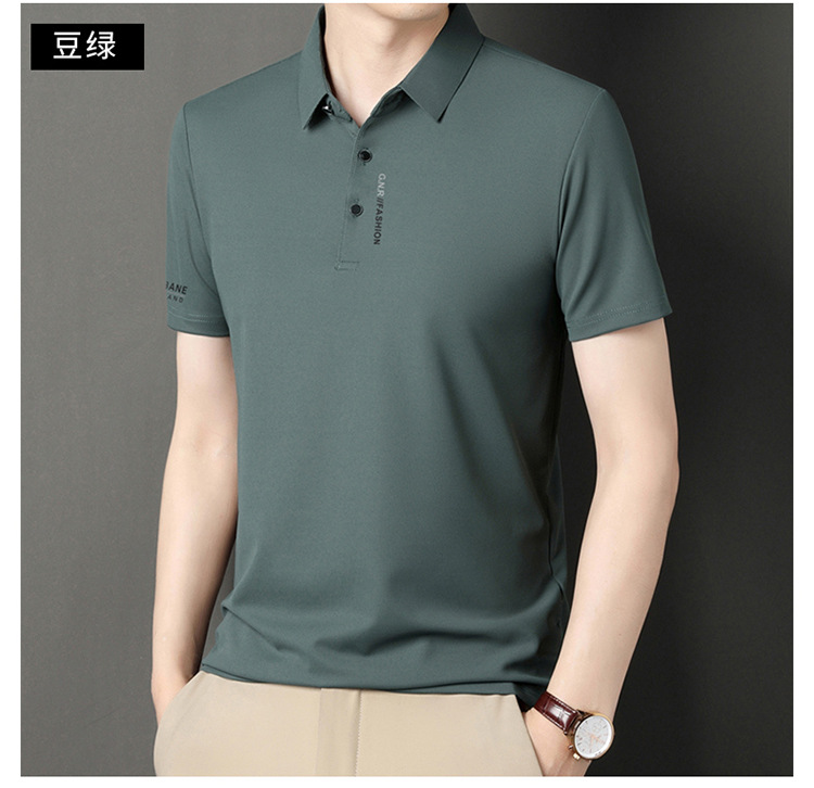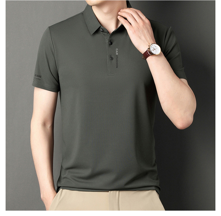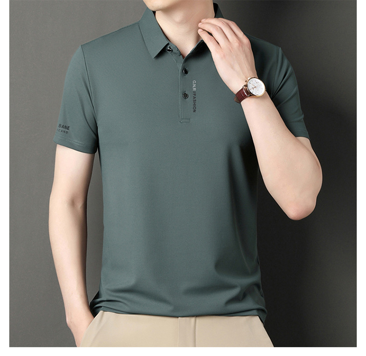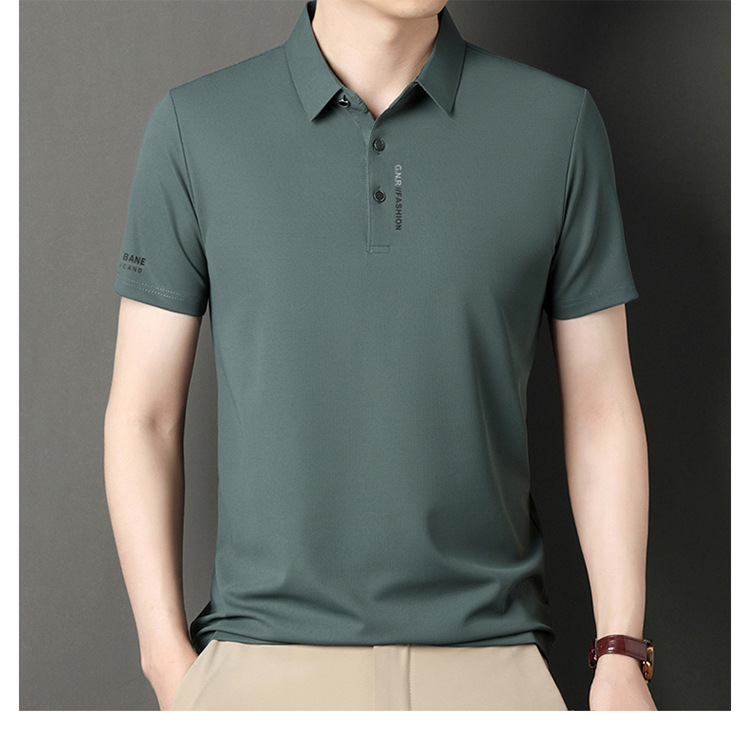 2025 новая летняя ледяная шелковая рубашка с короткими рукавами Поло для мужчин молодой бизнес-принт отворот футболка в прямом эфире