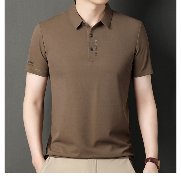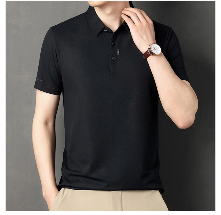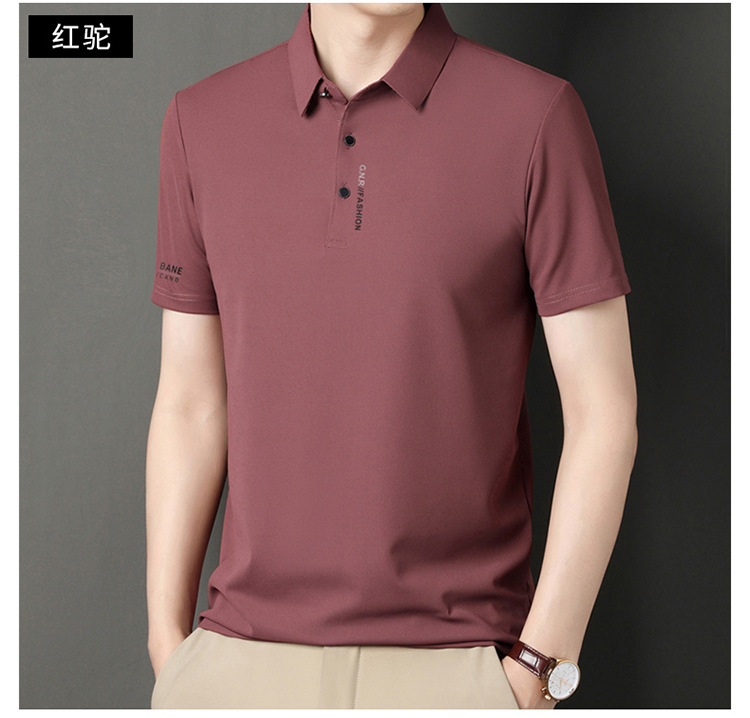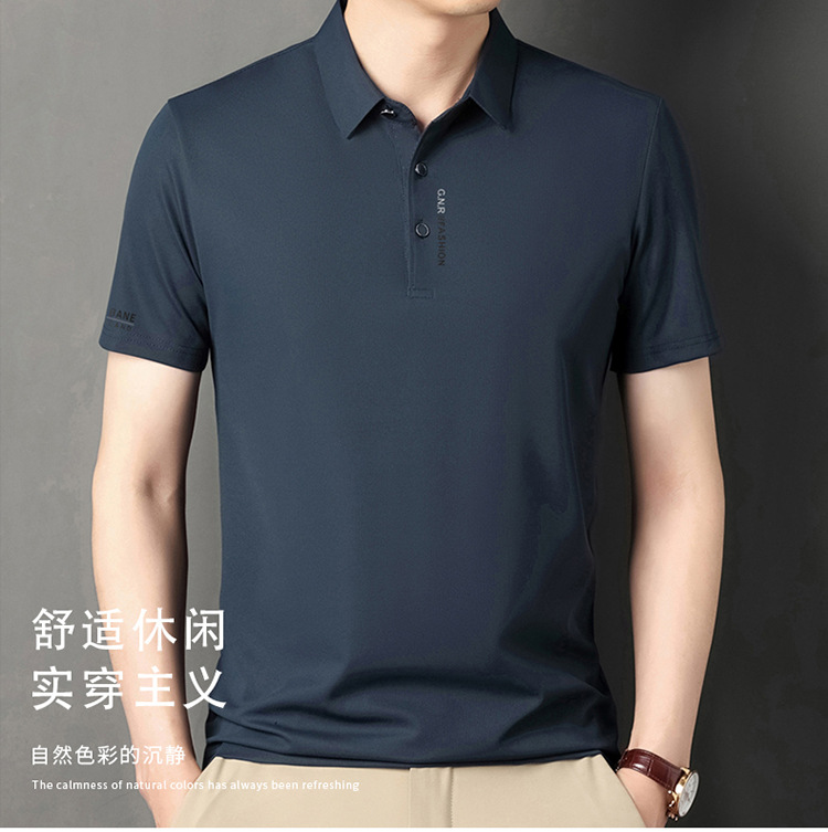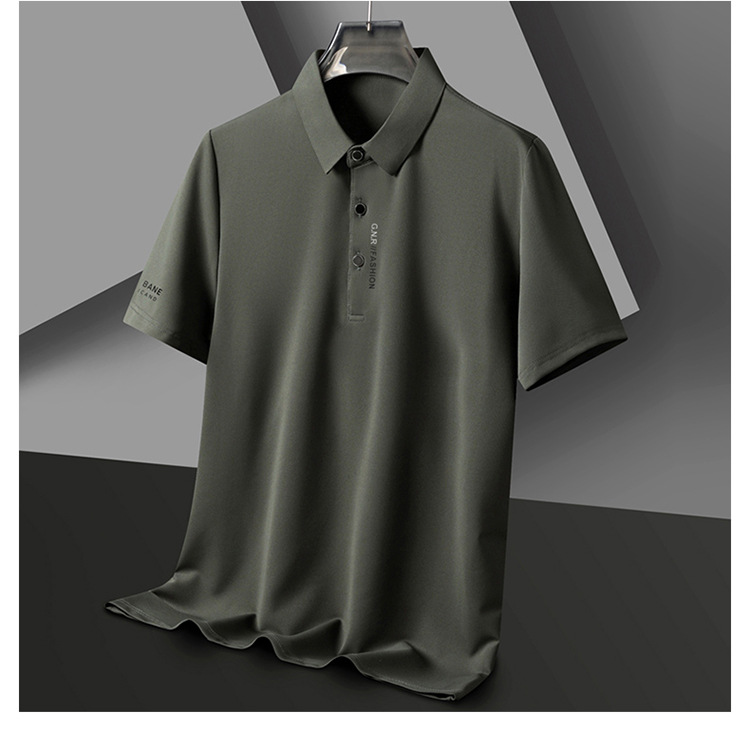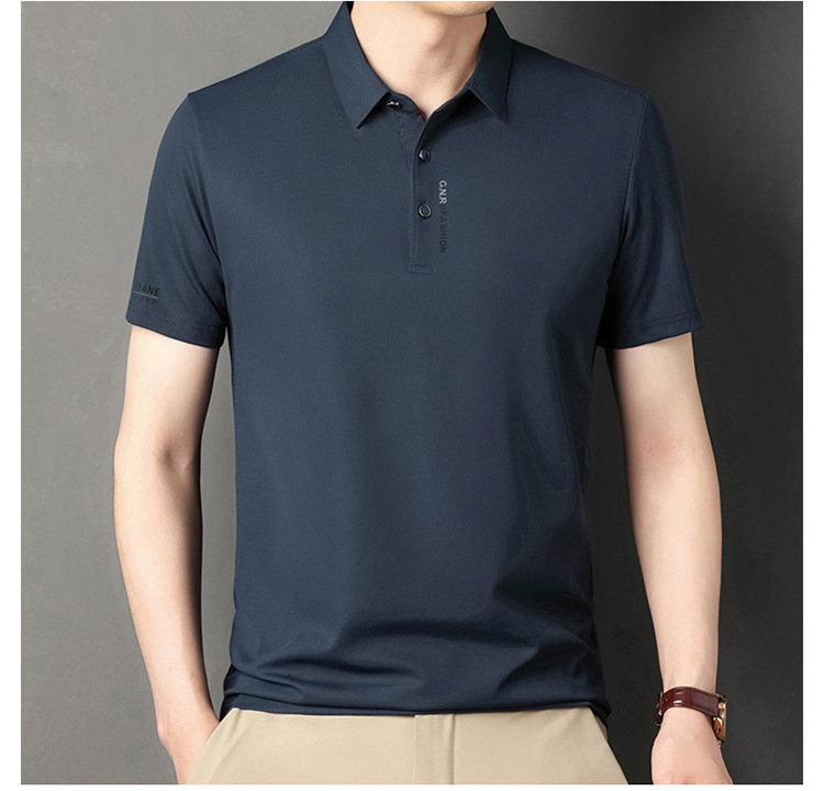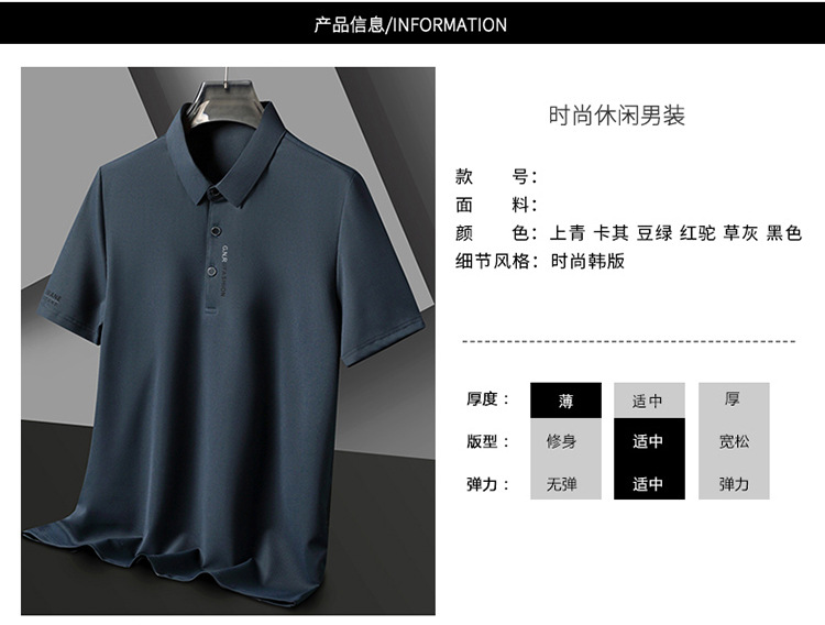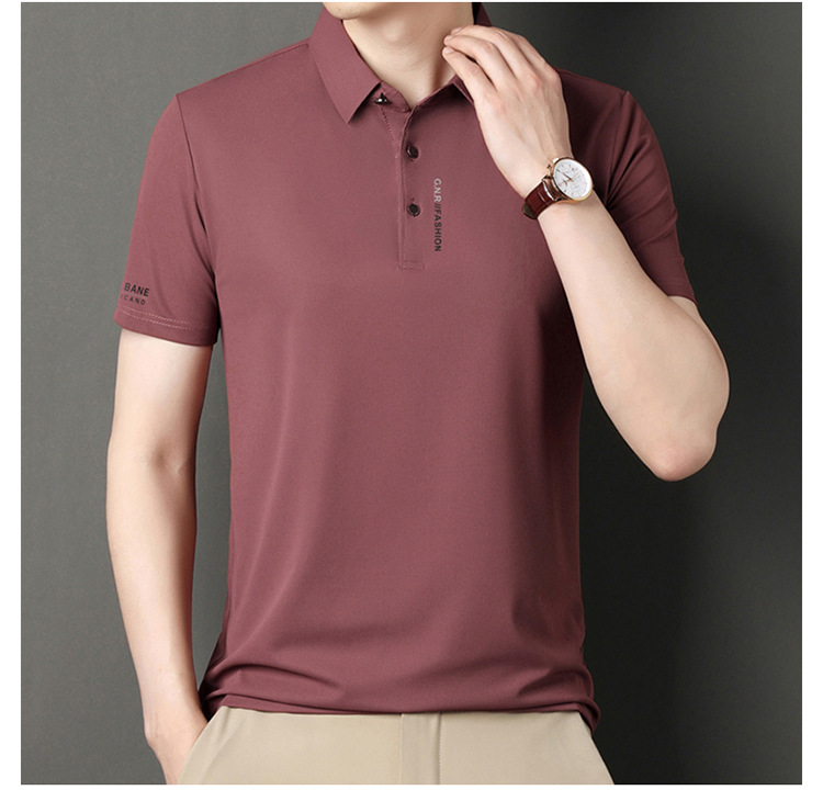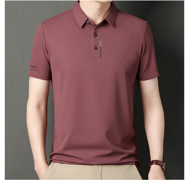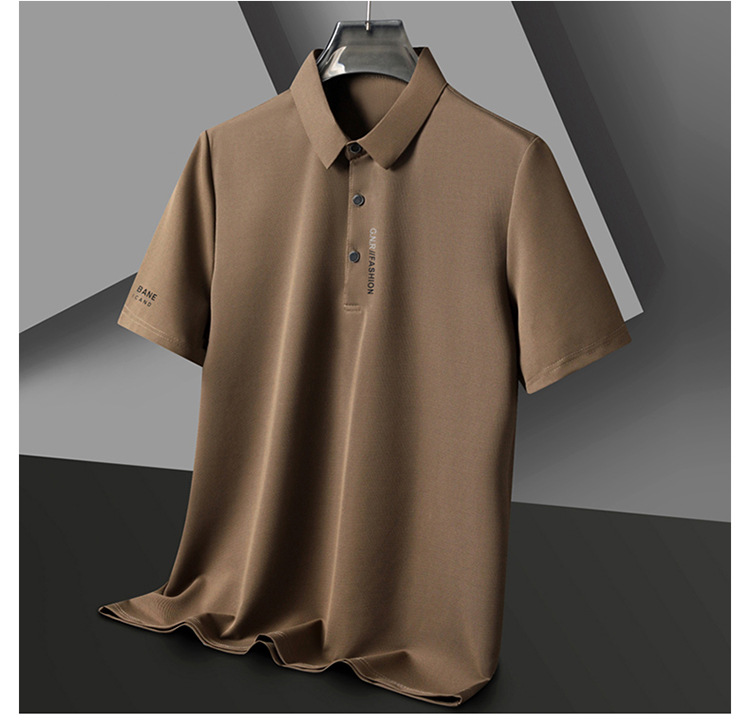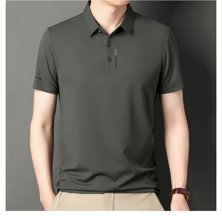 2025 новая летняя ледяная шелковая рубашка с короткими рукавами Поло для мужчин молодой бизнес-принт отворот футболка в прямом эфире