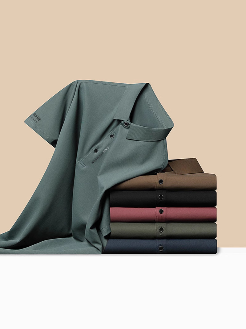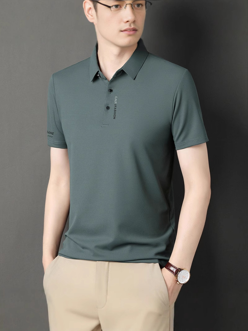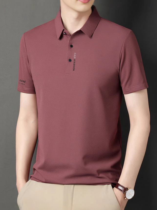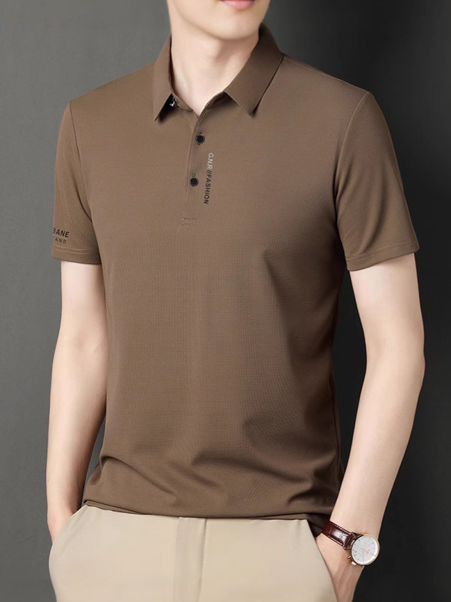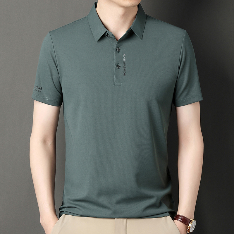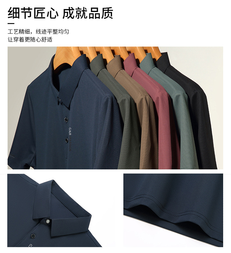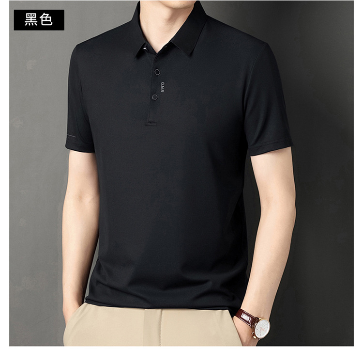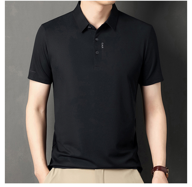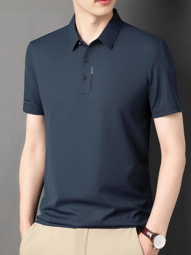 2025 новая летняя ледяная шелковая рубашка с короткими рукавами Поло для мужчин молодой бизнес-принт отворот футболка в прямом эфире