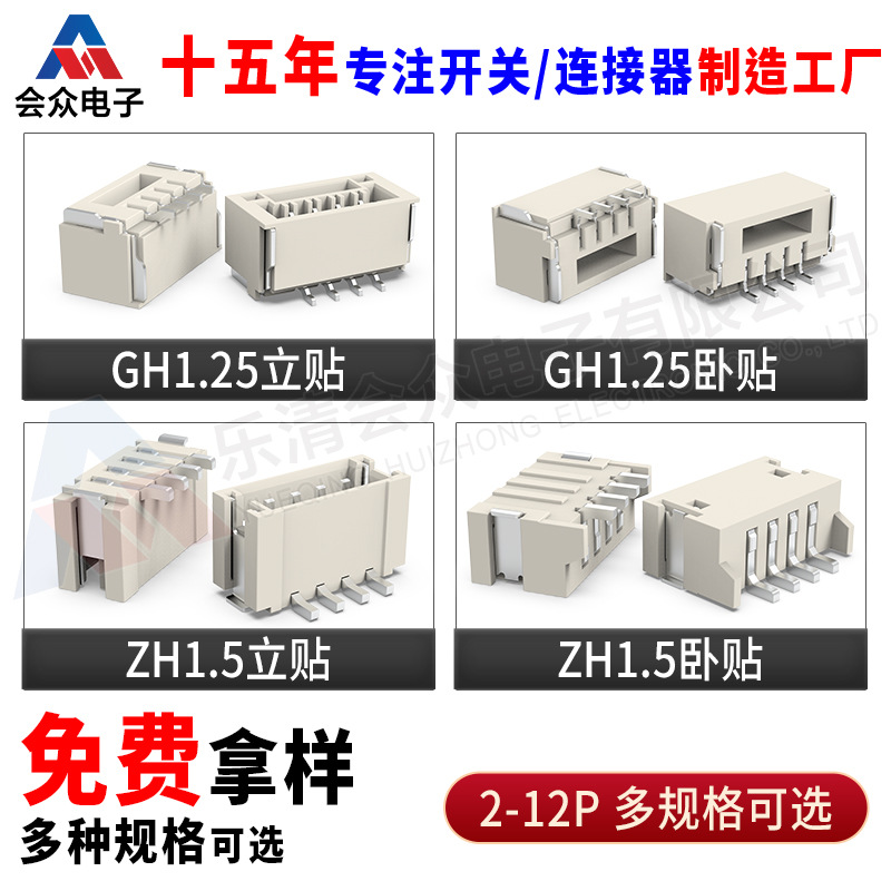 Разъемы SMD: штыревые коннекторы SH1.0/MX1.25/GH1.25/ZH1.5/PH2.0/XH2.54, вертикальные и горизонтальные разъемы