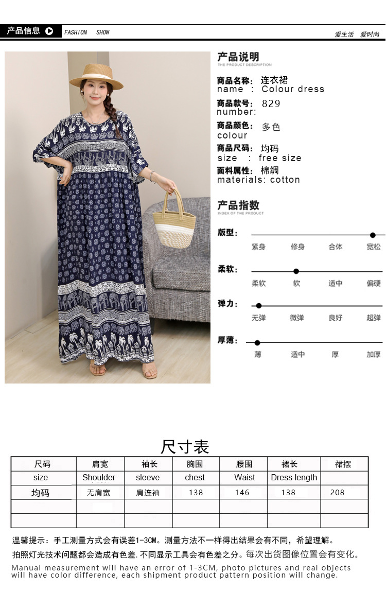 Женское летнее платье большого размера женская юбка длинная юбка рыхлое ретро туристическое платье азиатская юбка