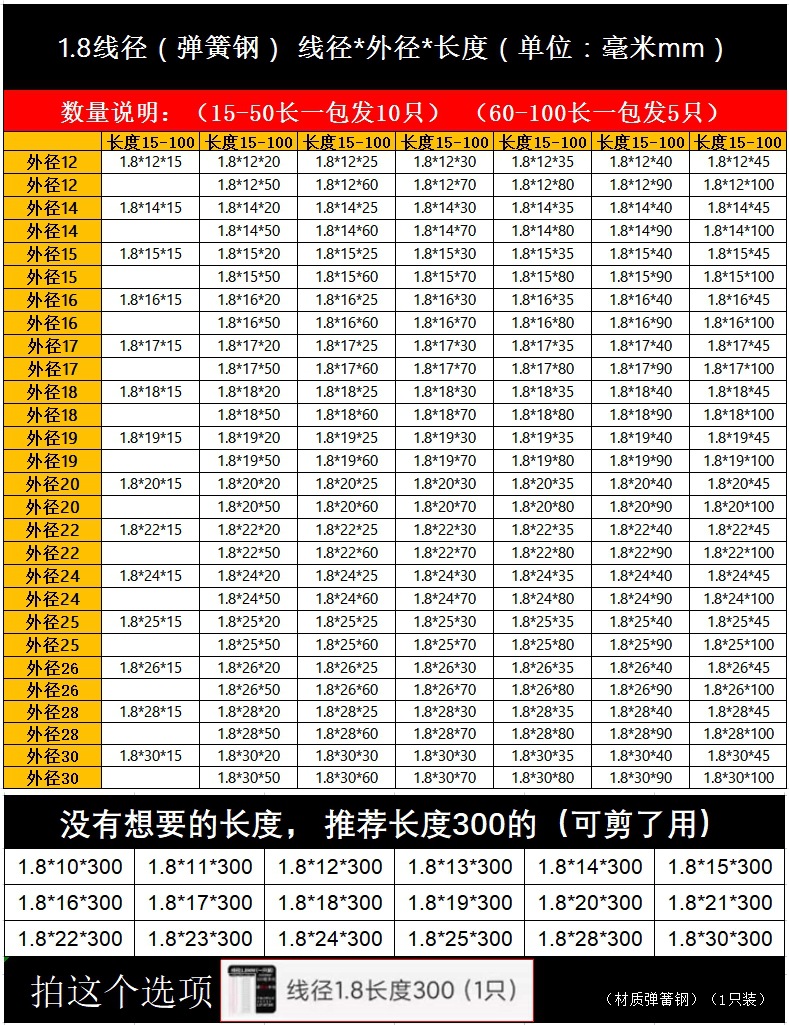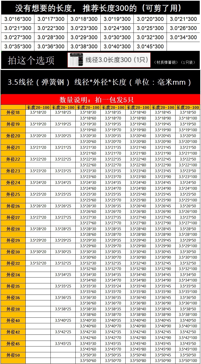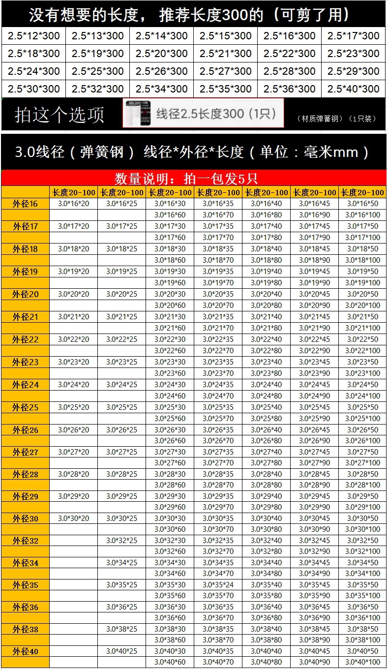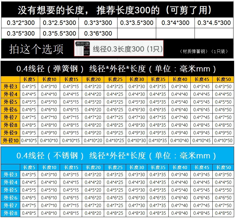 Пожалуйста, свяжитесь с магазином для настройки (без личных фотографий); Пружинная стальная проволока диаметром 0,3 (одна упаковка); Пружинная стальная проволока диаметром 0,4 (одна упаковка); Пружинная стальная проволока диаметром 0,5 (одна упаковка); Пружинная стальная проволока диаметром 0,6 (одна упаковка); Пружинная стальная проволока диаметром 0,7 (одна упаковка); Пружинная стальная проволока диаметром 0,8 (одна упаковка); Пружинная стальная проволока диаметром 0,9 (одна упаковка); Пружинная стальная проволока диаметром 1,0 (одна упаковка); Пружинная стальная проволока диаметром 1,2 (одна упаковка); Пружинная стальная проволока диаметром 1,4 (одна упаковка); Пружинная стальная проволока диаметром 1,5 (одна упаковка); Пружинная стальная проволока диаметром 1,6 (одна упаковка); Пружинная стальная проволока диаметром 1,8 (одна упаковка); Пружинная стальная проволока диаметром 2,0 (одна упаковка); Пружинная стальная проволока диаметром 2,5 (5 шт.); Пружинная стальная проволока диаметром 3,0 (5 шт.); Пружинная стальная проволока диаметром 3,5 (длина 20-50) в упаковке.; Пружинная стальная проволока диаметром 3,5 (длина 60-100) в упаковке.; Проволока из нержавеющей стали диаметром 0,3 (одна упаковка); Проволока из нержавеющей стали диаметром 0,4 (одна упаковка); Проволока из нержавеющей стали диаметром 0,5 (одна упаковка); Проволока из нержавеющей стали диаметром 0,6 (одна упаковка); Проволока из нержавеющей стали диаметром 0,7 (одна упаковка); Проволока из нержавеющей стали диаметром 0,8 (одна упаковка); Проволока из нержавеющей стали диаметром 1,0 (одна упаковка); Проволока из нержавеющей стали диаметром 1,2 (одна упаковка); Проволока из нержавеющей стали диаметром 1,4 (одна упаковка); Проволока из нержавеющей стали диаметром 1,5 (одна упаковка); Проволока из нержавеющей стали диаметром 1,6 (одна упаковка); Проволока из нержавеющей стали диаметром 2,0 (одна упаковка); 0,3 (примечание внешний диаметр) длина 300; 0,4 (примечание внешний диаметр) длина 300; 0,5 (примечание внешний диаметр) длина 300; 0,6 (примечание внешний диаметр) длина 300; 0,7 (примечание внешний диаметр) длина 300; 0,8 (примечание внешний диаметр) длина 300; 0,9 (примечание внешний диаметр) длина 300; 1,0 (примечание внешний диаметр) длина 300; 1,2 (примечание внешний диаметр) длина 300; 1,4 (примечание внешний диаметр) длина 300; 1,5 (примечание внешний диаметр) длина 300; 1,6 (примечание внешний диаметр) длина 300; 1,8 (примечание внешний диаметр) длина 300; 2,0 (примечание внешний диаметр) длина 300; 2,5 (примечание внешний диаметр) длина 300; 3,0 (примечание внешний диаметр) длина 300; 3,5 (примечание внешний диаметр) длина 300
