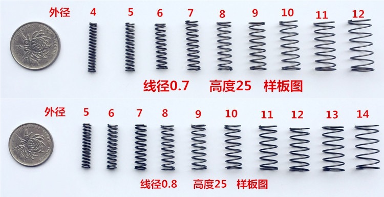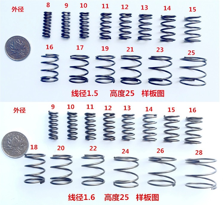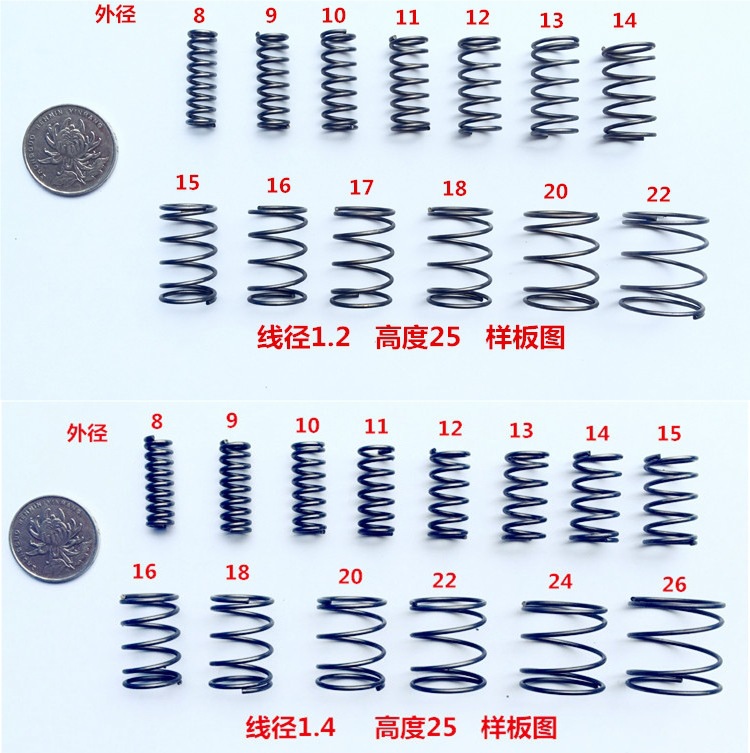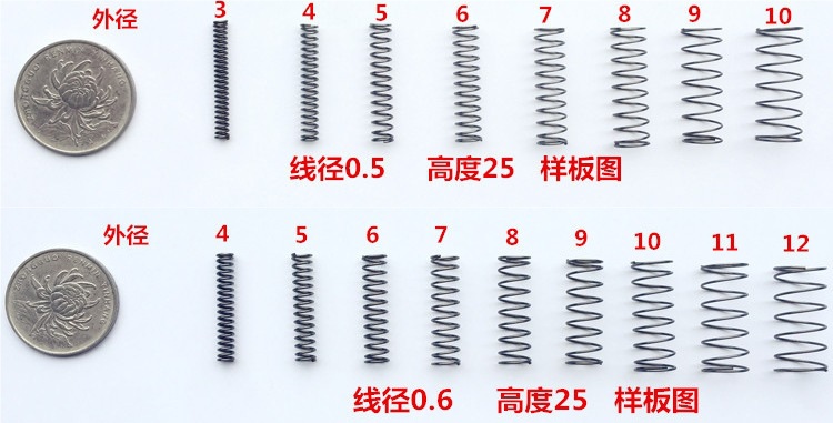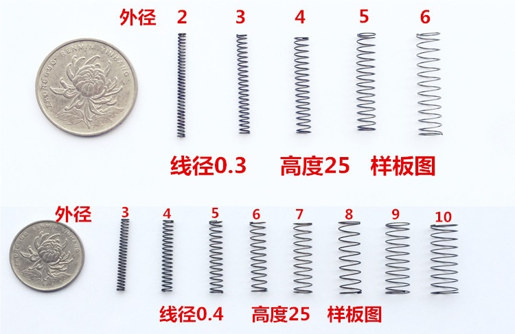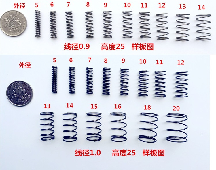 Маленькая пружина Y-образная пружина сжатия, стальная пружина, пружинная сталь, нержавеющая сталь, возврат 0,3-2,0, внешний диаметр 2-28, длина 5-50, обработка