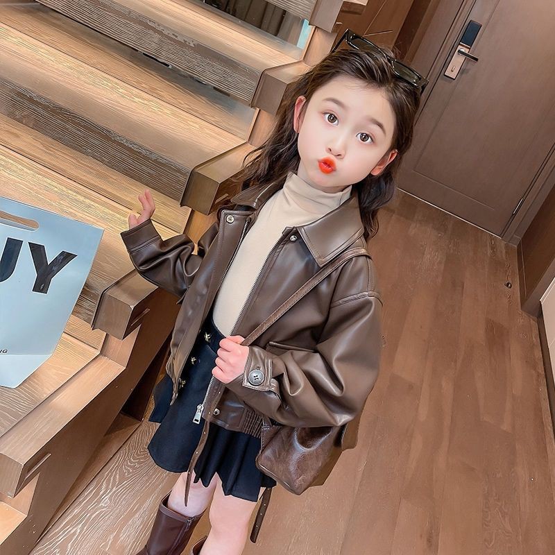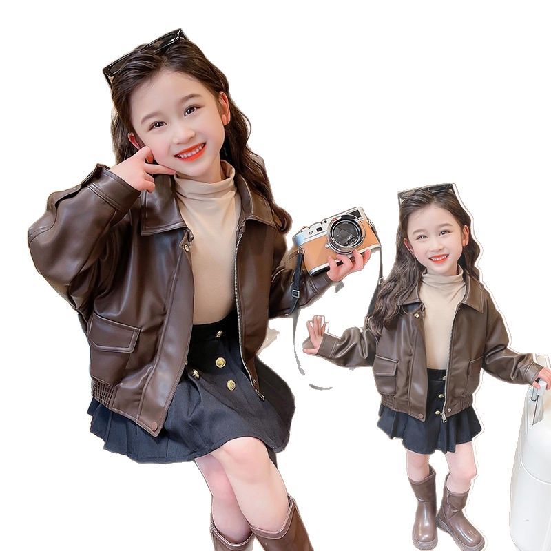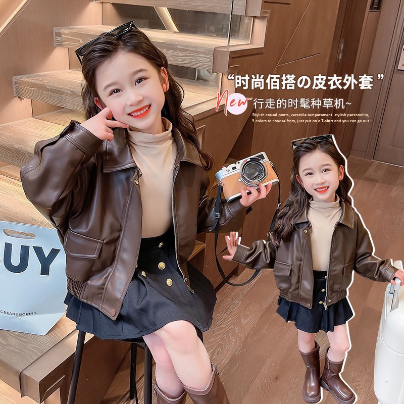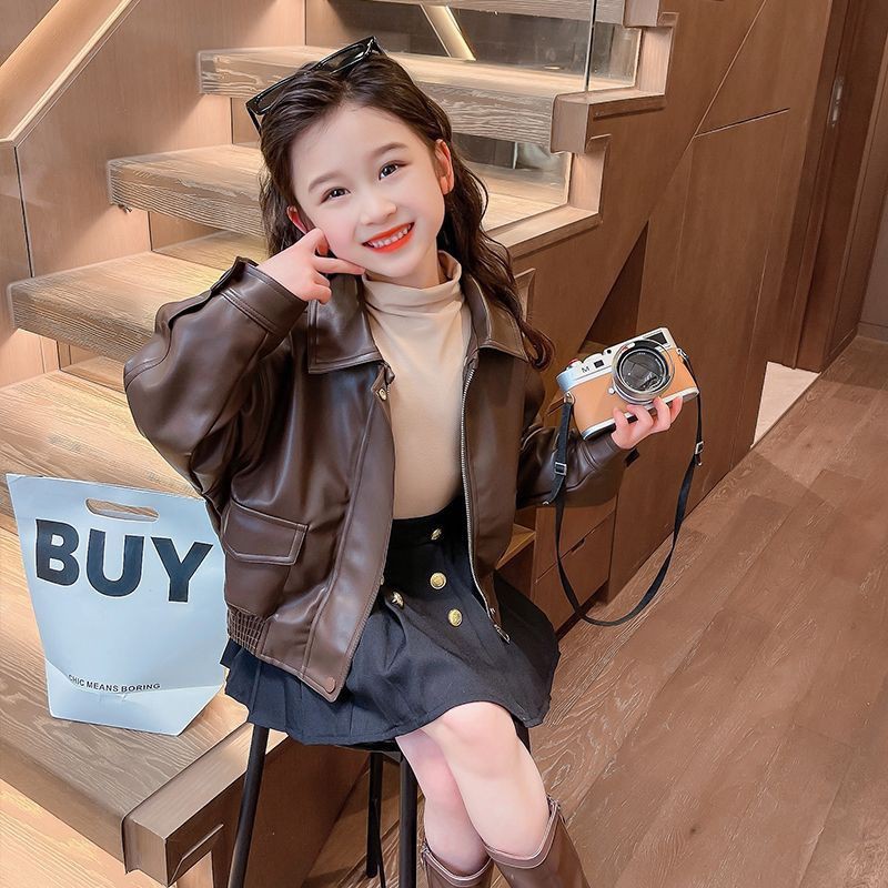 Весенне-осенняя одежда для девочек 2025 года, новые модные детские осенние повседневные топы, модные осенние короткие кожаные куртки для малышей