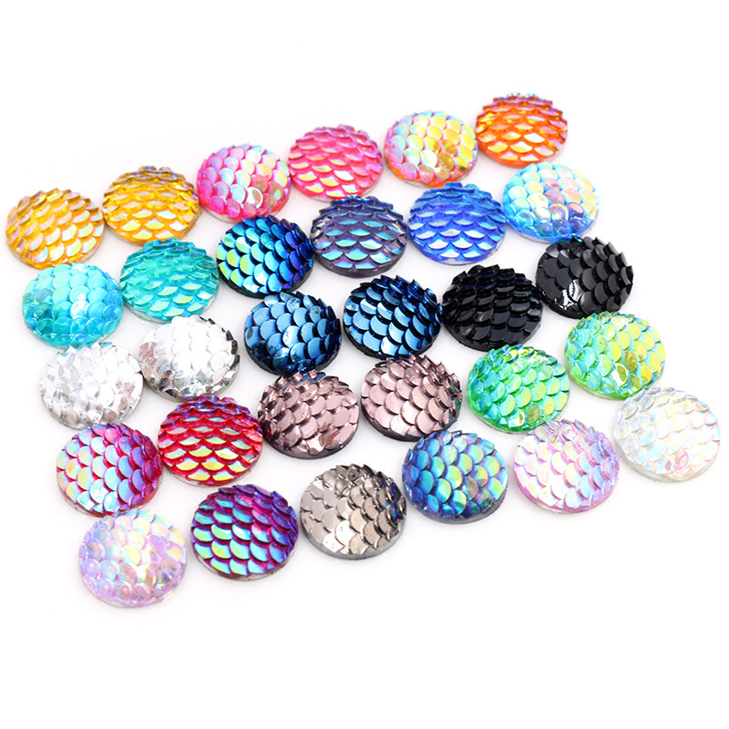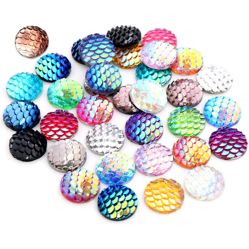 8мм 10мм 12мм круглые пластинки из смолы под рыбью чешую для DIY украшений, аксессуары для карт, плоские основы для камней, алмазные.