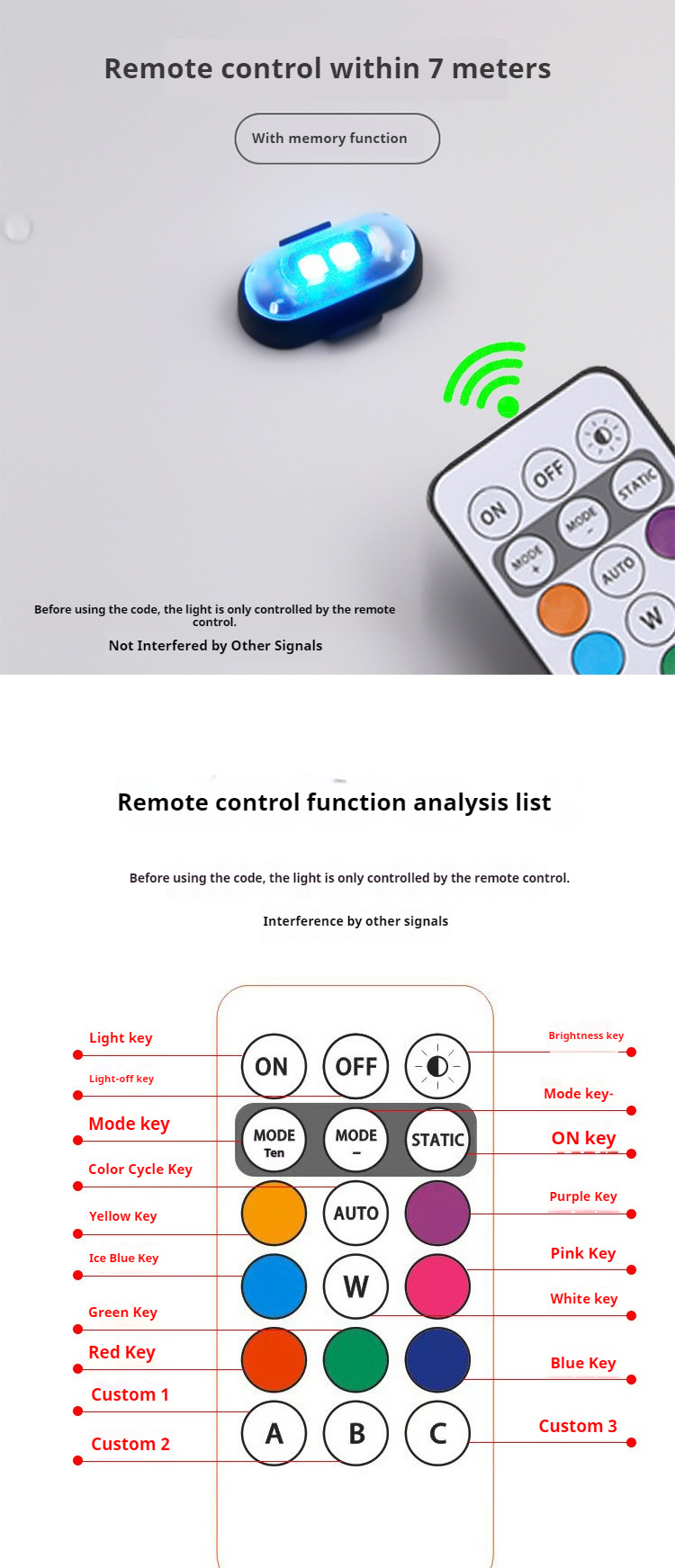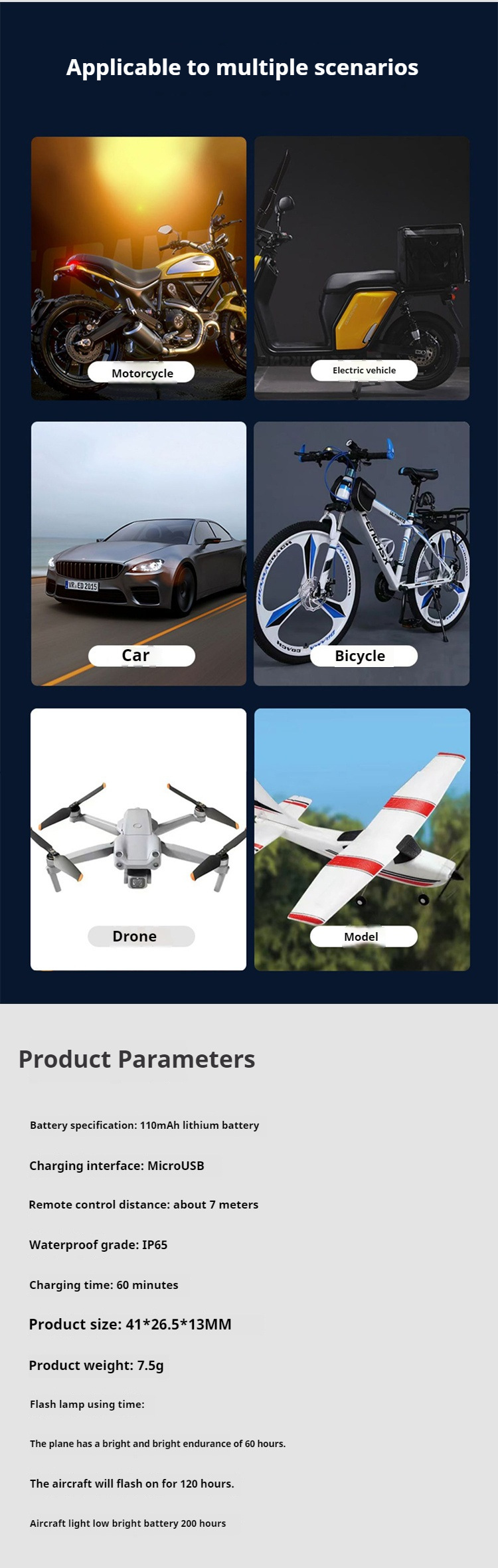 Беспроводной светильник для самолета с дистанционным управлением, автомобильный стробоскоп, сигнальная лампа для мотоцикла, цветной светодиодный контрольный светильник, зарядка через USB и водонепроницаемость