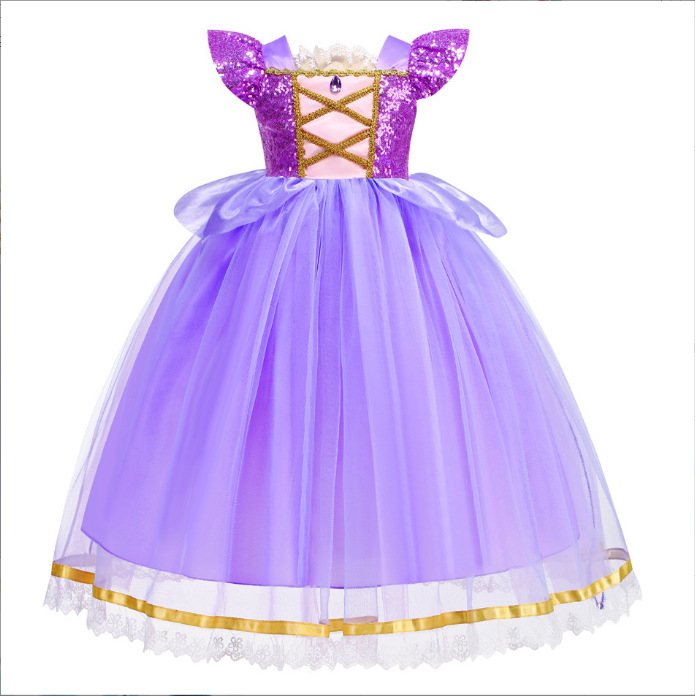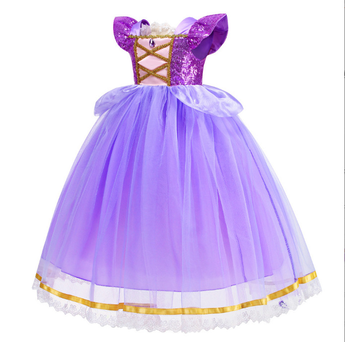 Длинноволосая европейская и американская юбка принцессы Золотой большой лук пушистый юбка Фиолетовая кружевная юбка