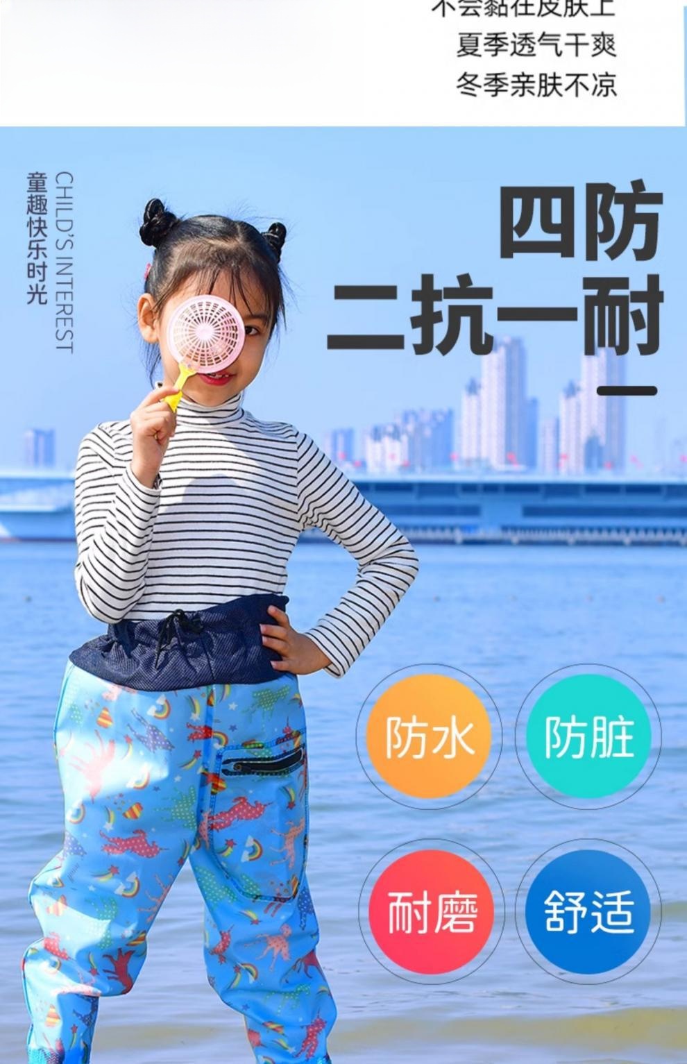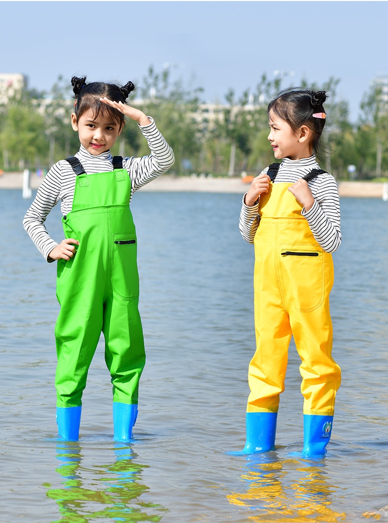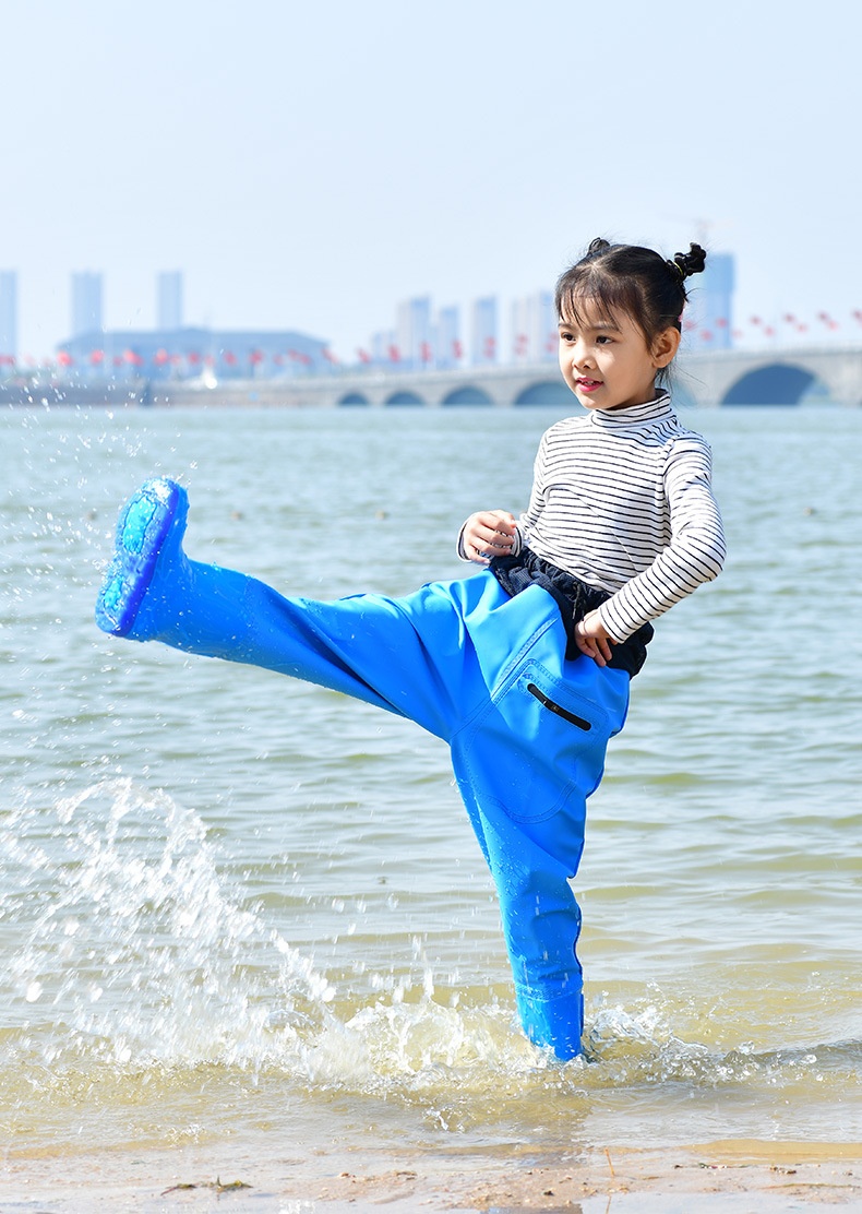 Дети ловили море, чтобы играть в водную одежду для всего тела водонепроницаемые дождевые штаны сапоги