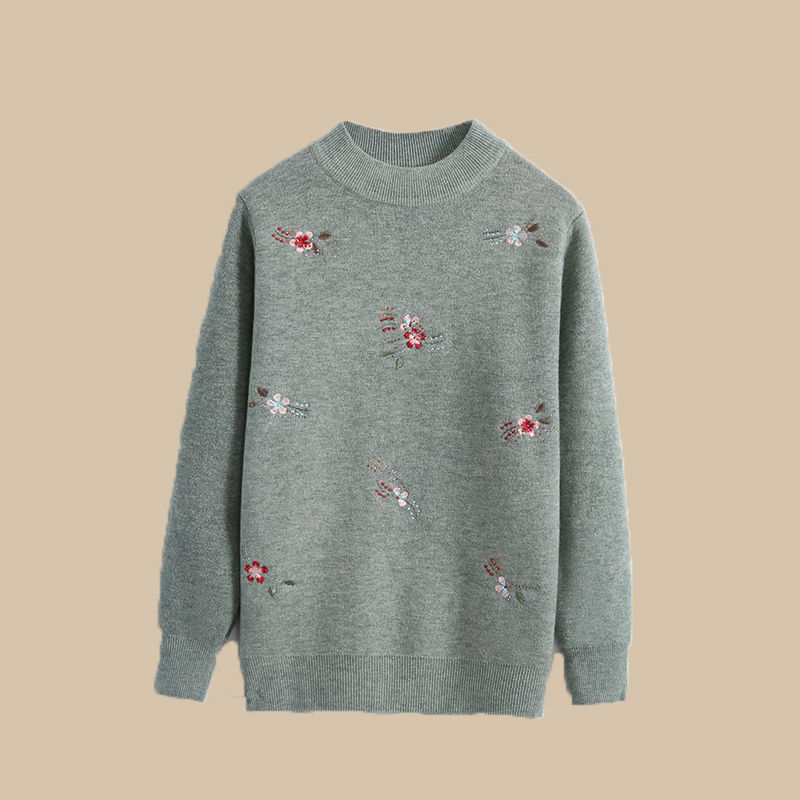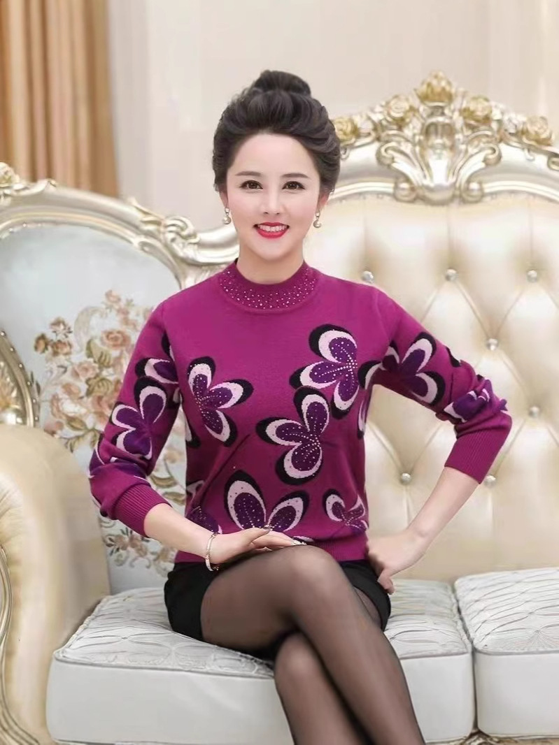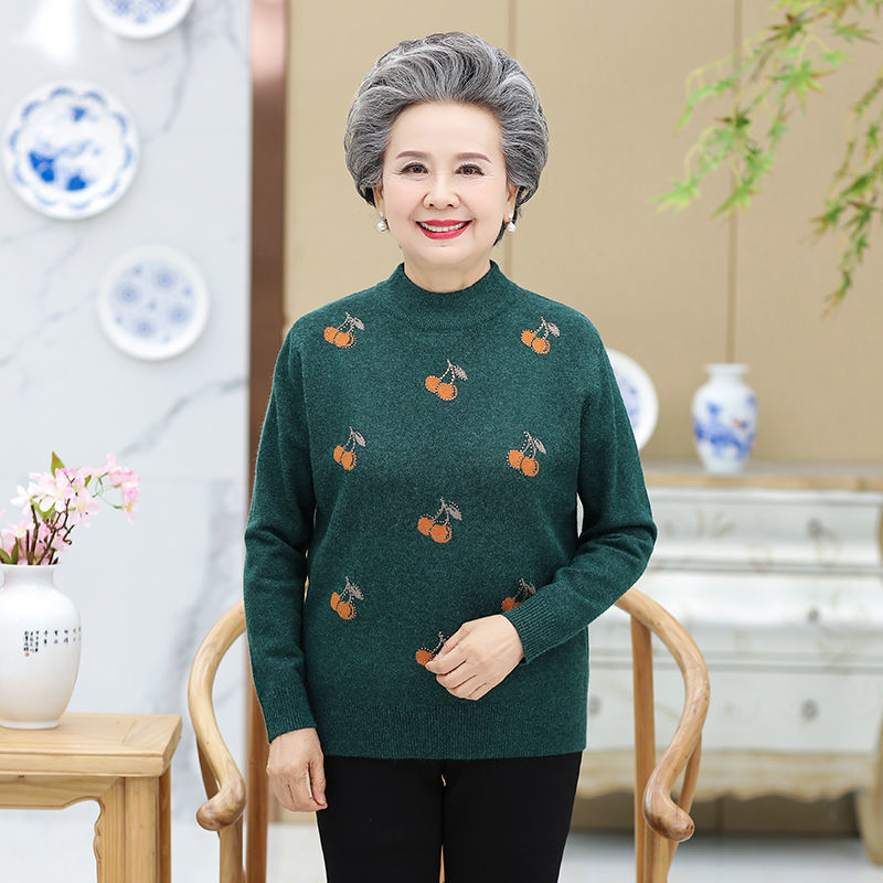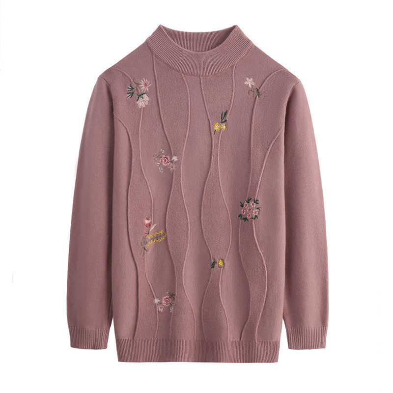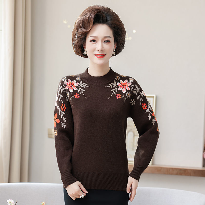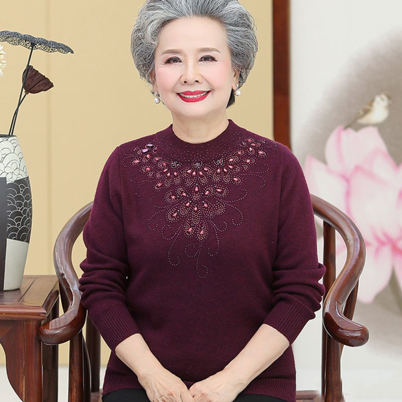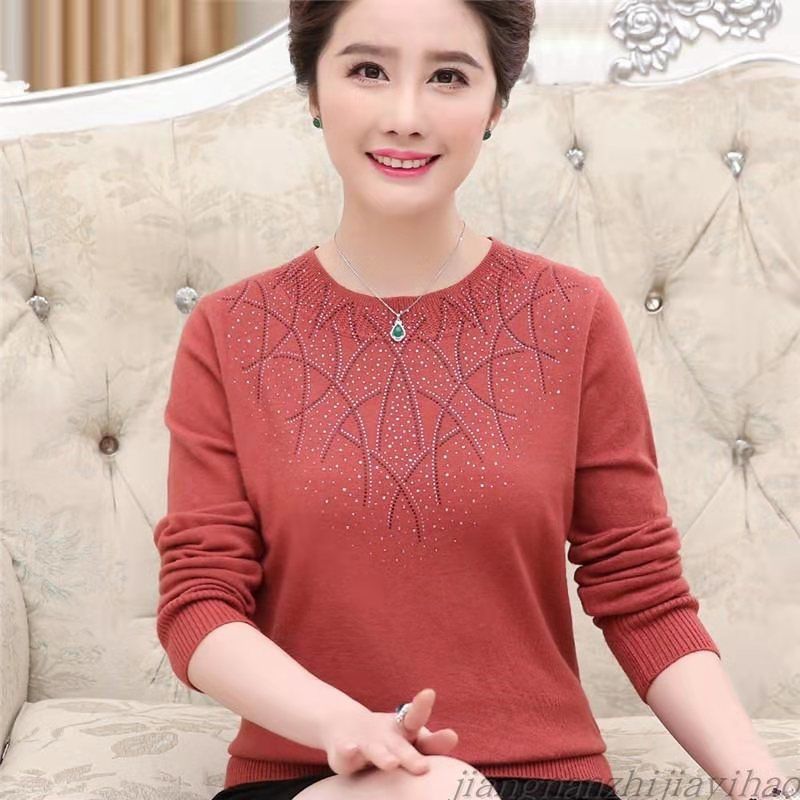 Свитера для женщин среднего и старшего возраста, зимняя одежда для бабушек, утепленные базовые рубашки, одежда для мам на год по знаку зодиака, вязаные рубашки с вышивкой.