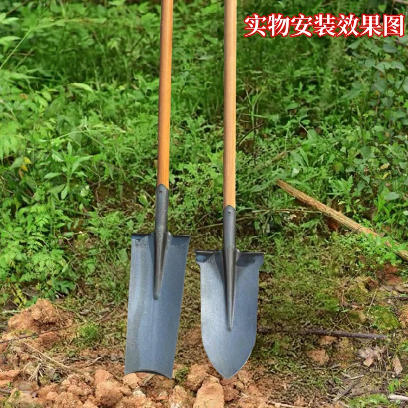 Заводское производство закаленной стали марки марганец для лопат из железа, с деревянными ручками, для пересадки рассады, рытья траншей и работы в саду, а также для перемешивания почвы.