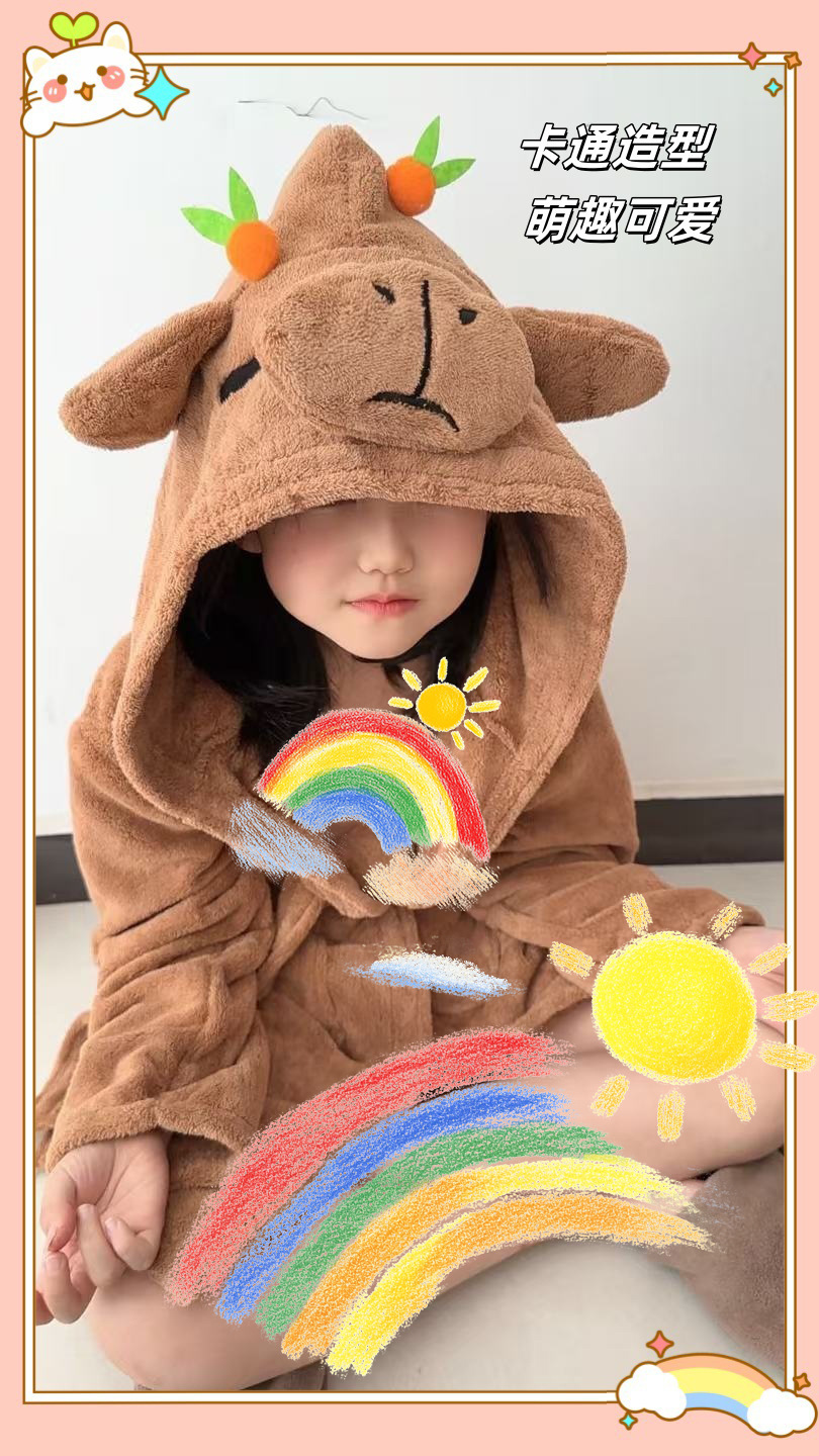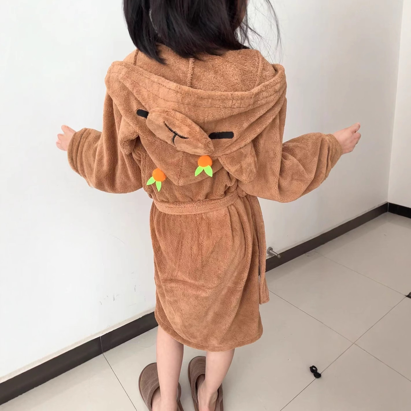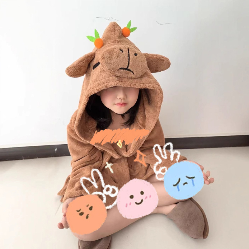 Детский халат теплый длинный с капюшоном