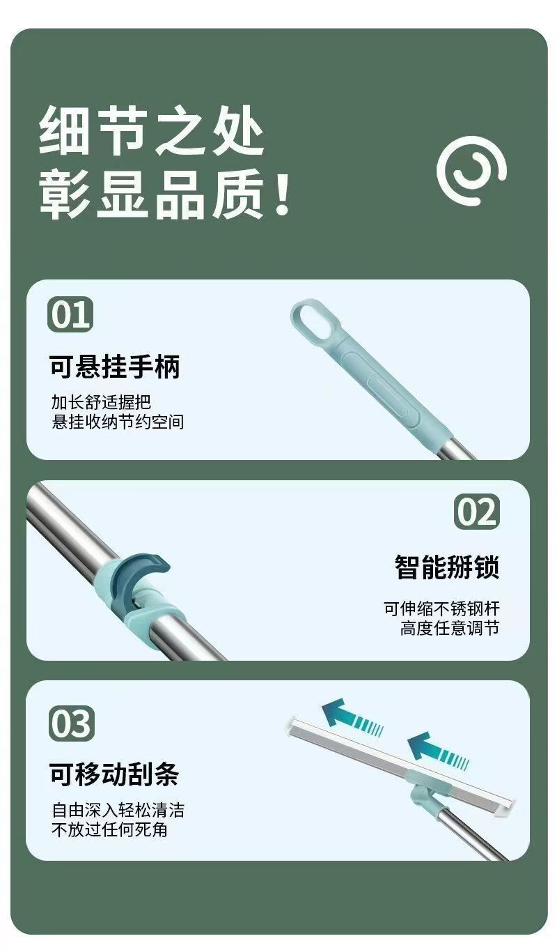 家用卫生间魔术扫把拆卸胶条不锈钢伸缩杆刮水器可旋转浴室地刮