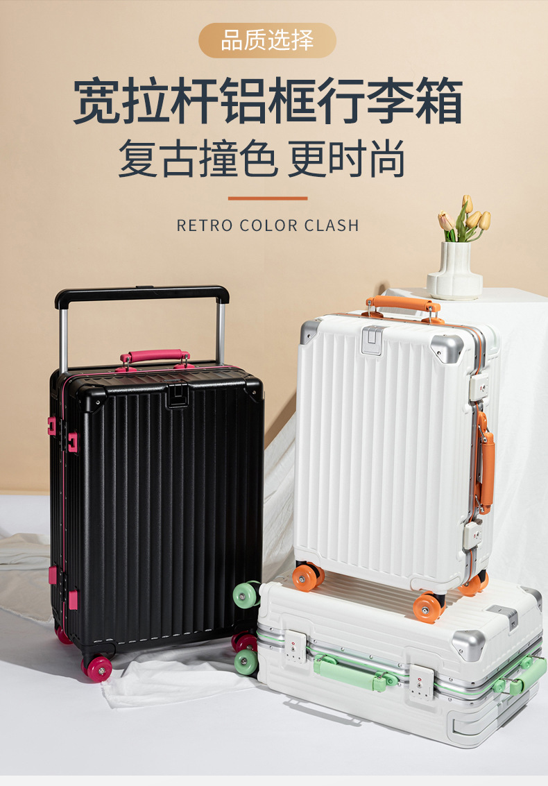 Водонепроницаемый чемодан 20 дюймов с широкой ручкой, алюминиевым каркасом, из поликарбоната, на колесиках, для студентов, оптом, 24 дюйма, с кодовым замком, дорожный кейс