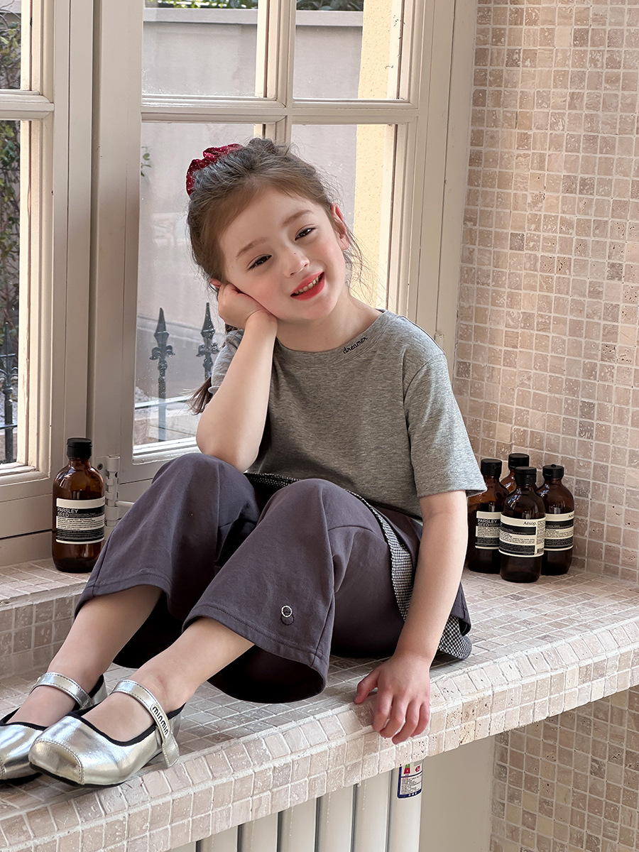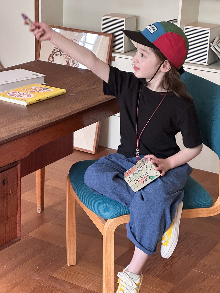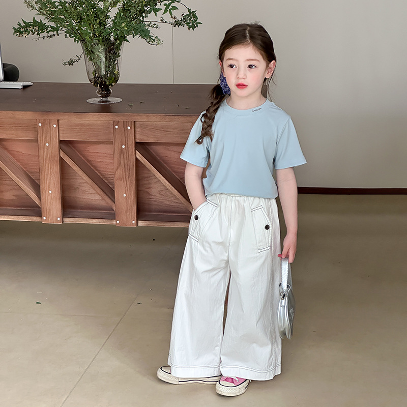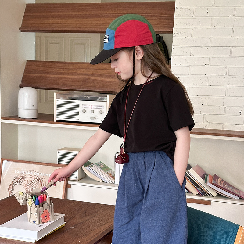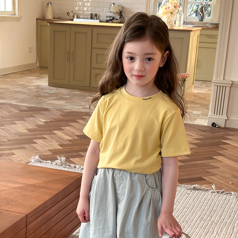 Детская футболка Aimo Beibei Lyocell Tencel, однотонная футболка для девочек, корейский дизайн, воротник с короткими рукавами и надписью