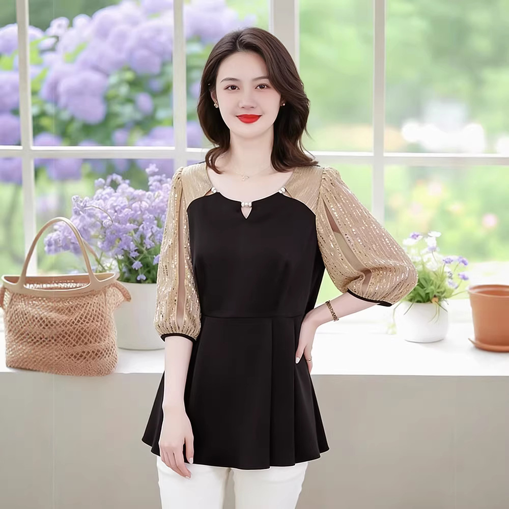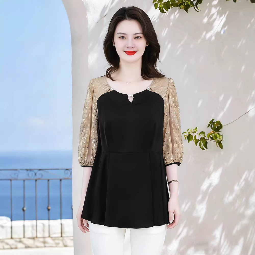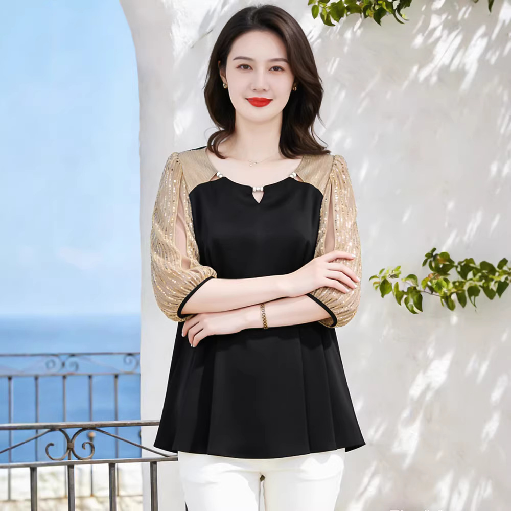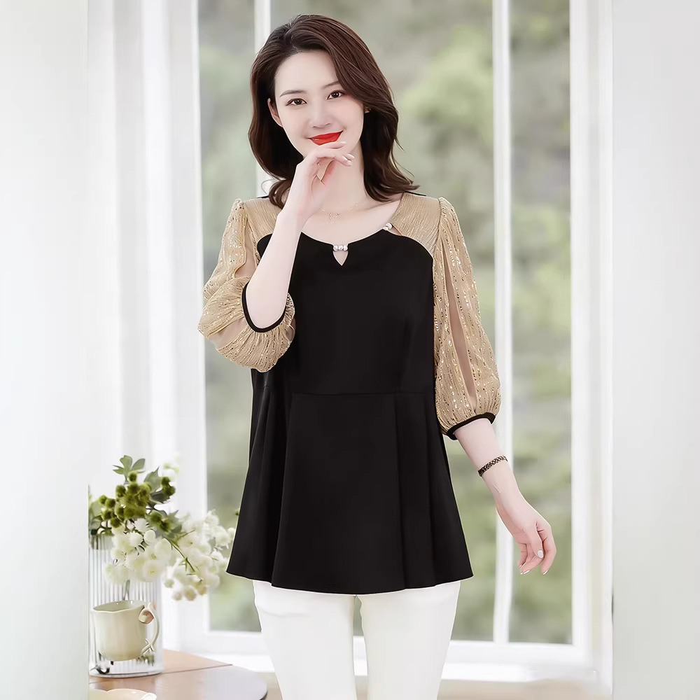 2025 светло-роскошная леди большого размера модная шифоновая рубашка высокого класса плюс-размер сети красная одежда повседневная тощая женская одежда