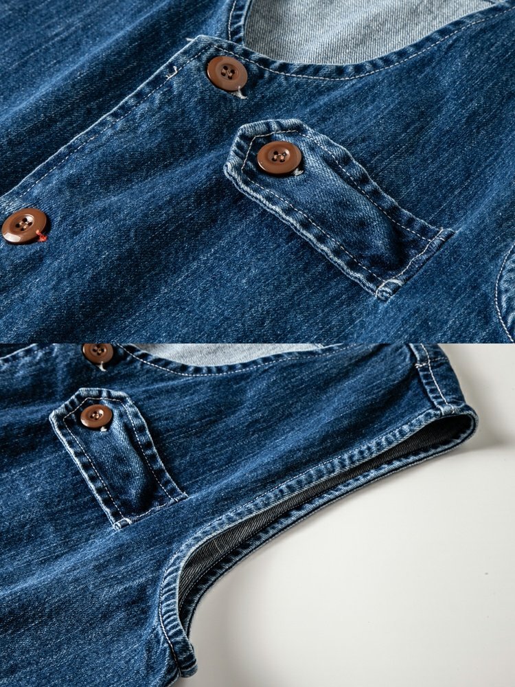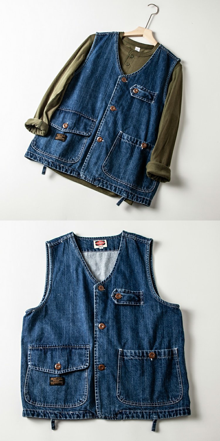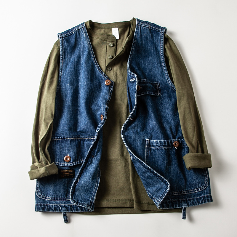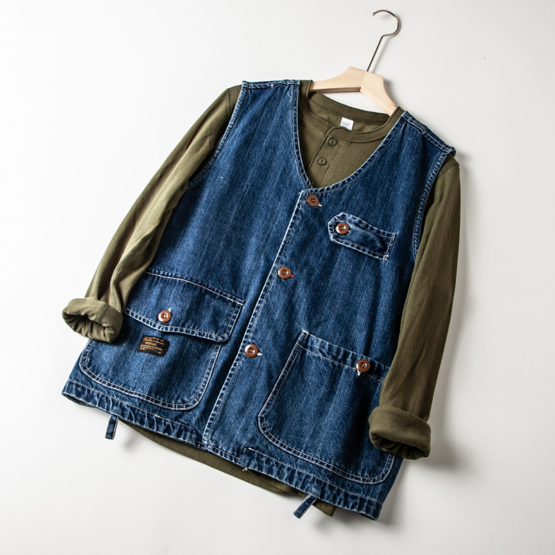 Повседневный джинсовый жилет с v-образным вырезом и несколькими карманами в японском стиле для мужчин, универсальная свободная верхняя одежда, рабочая одежда, жилет для пар, куртка