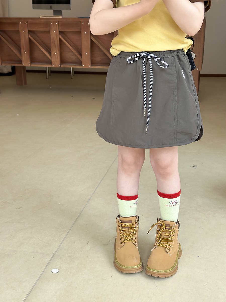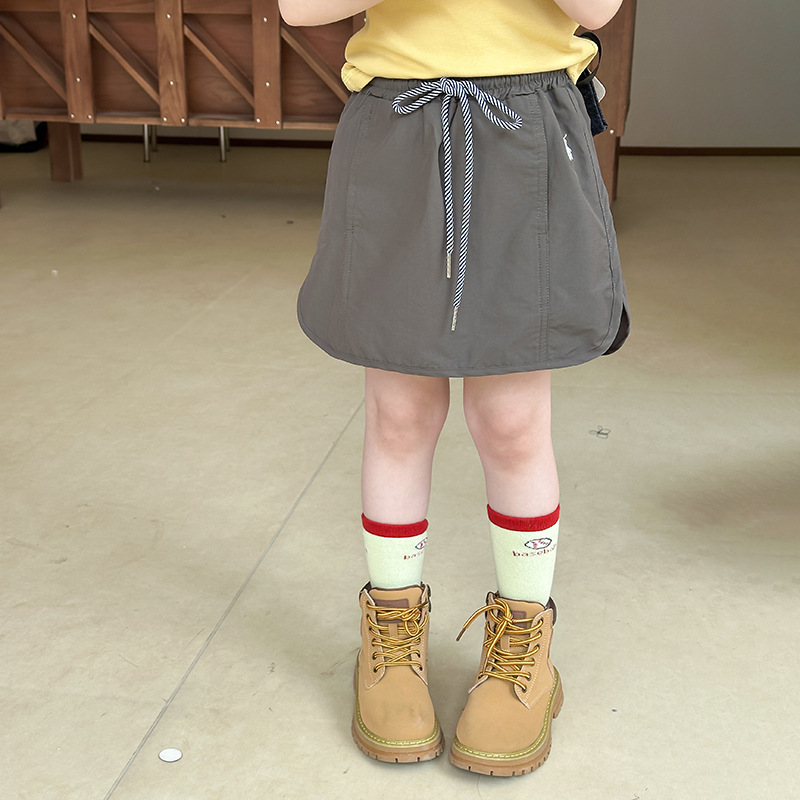 Детская рабочая одежда Aimobebbe, короткая юбка на шнурке, летняя юбка для девочек, стильная универсальная юбка с разрезом