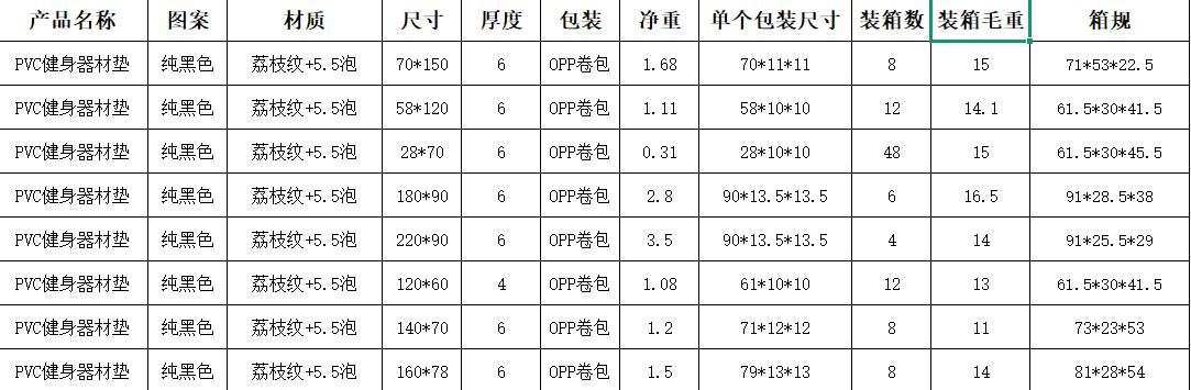 平纹PVC纯黑色120*60*0.4cm 重量1.08KG 箱规 61.5*30*41.5 12个装 14KG毛重