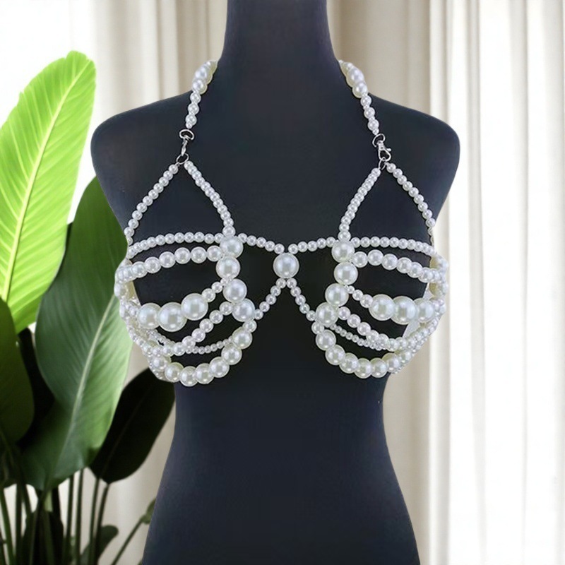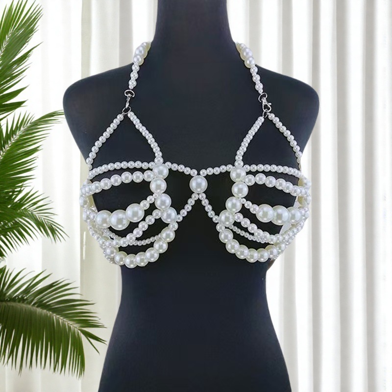 XLZZ661 Европейская и американская модная бижутерия для лета и пляжа, сексуальная цепочка на грудь, ручная работа, жемчужная цепочка для бюстгальтера.