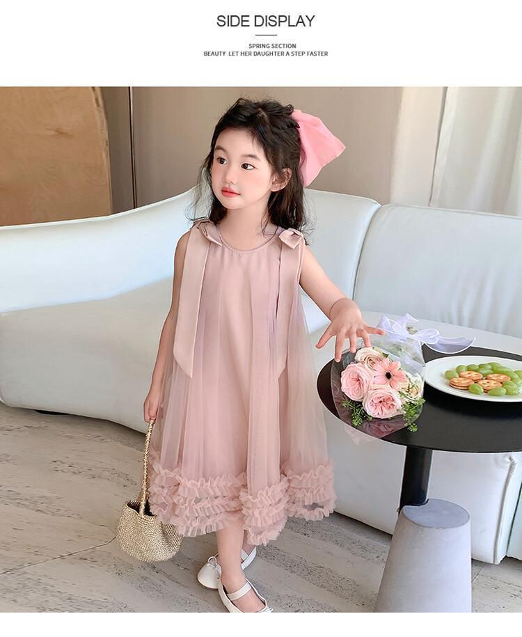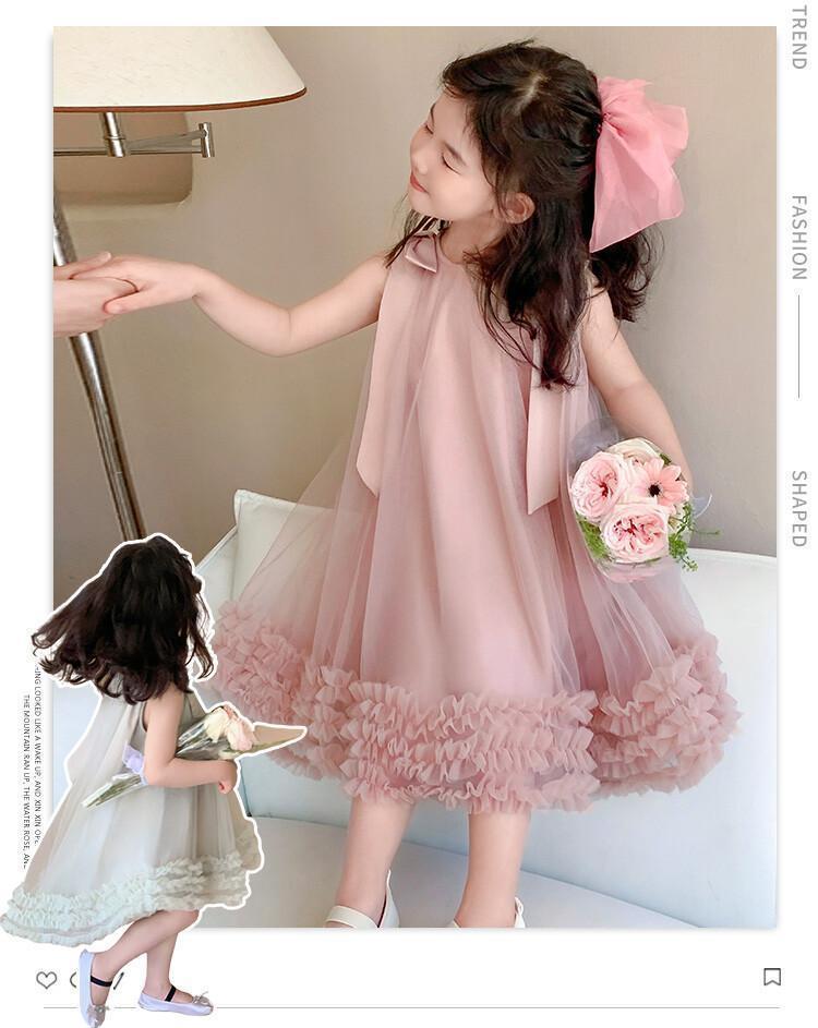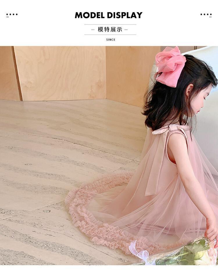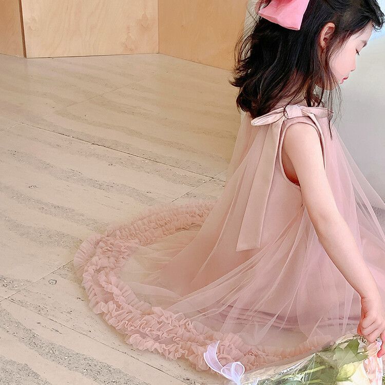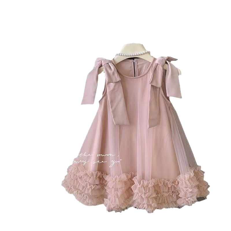Платье для девочек лето 2024 иностранные новые детские банты сетка платье принцессы детское платье без рукавов