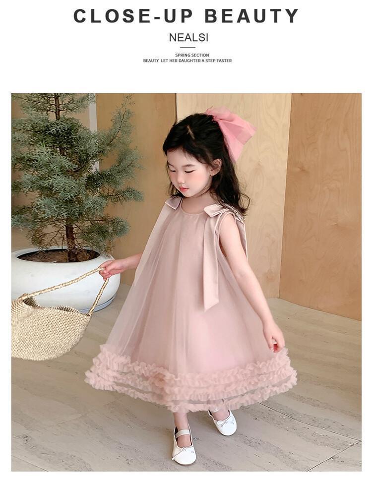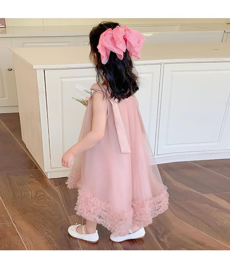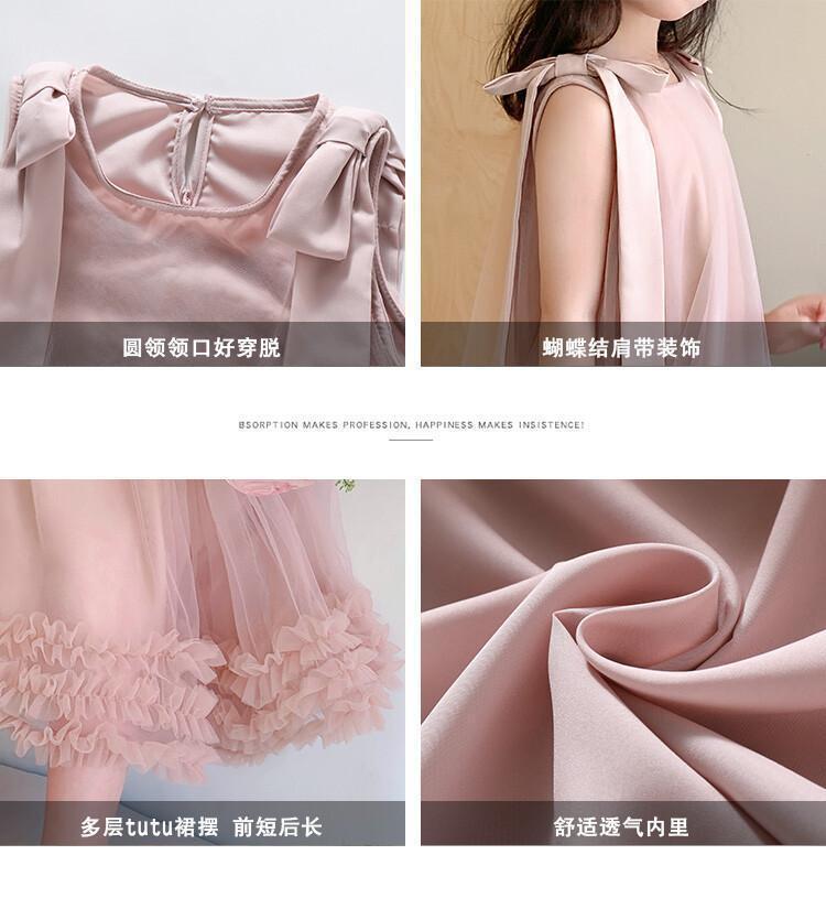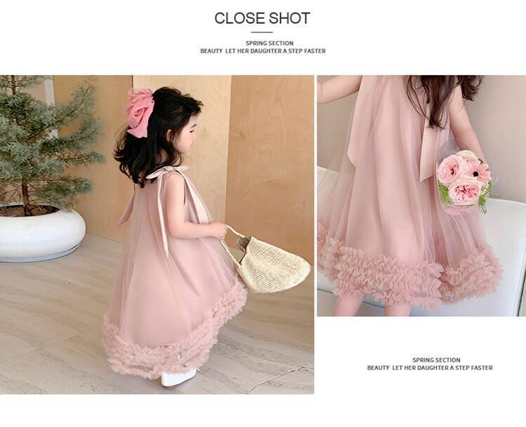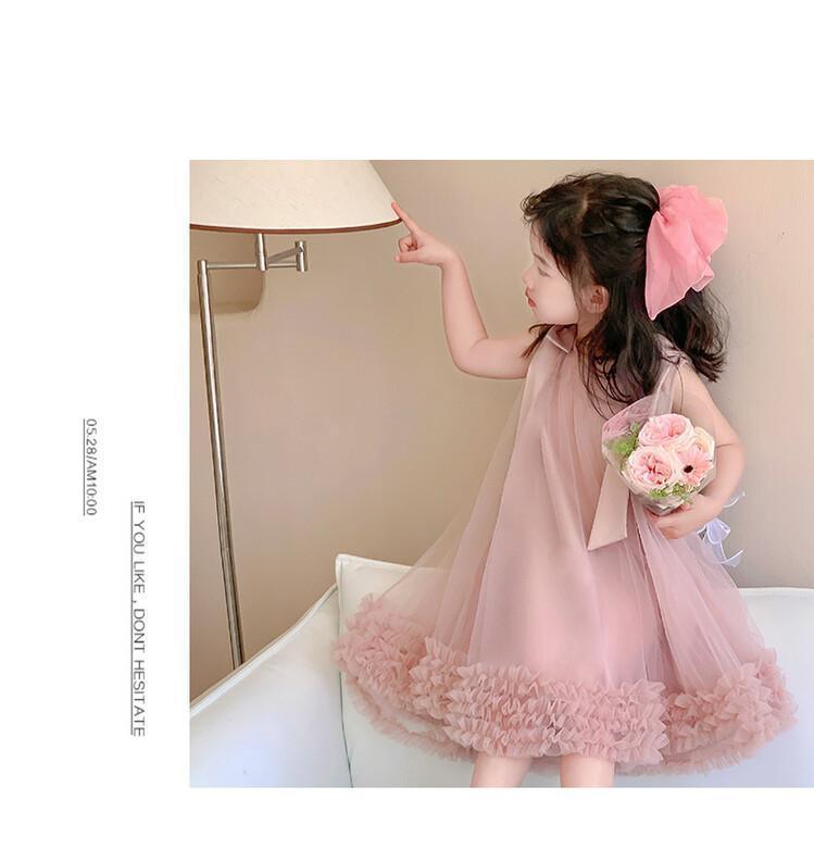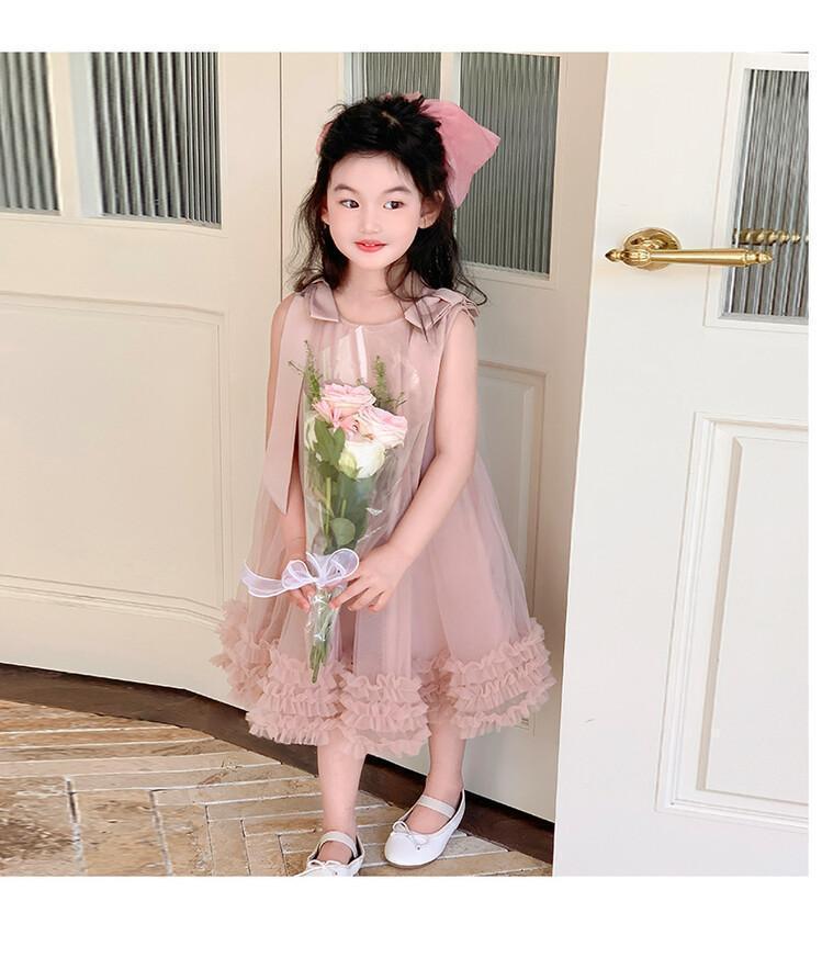 Платье для девочек лето 2024 иностранные новые детские банты сетка платье принцессы детское платье без рукавов