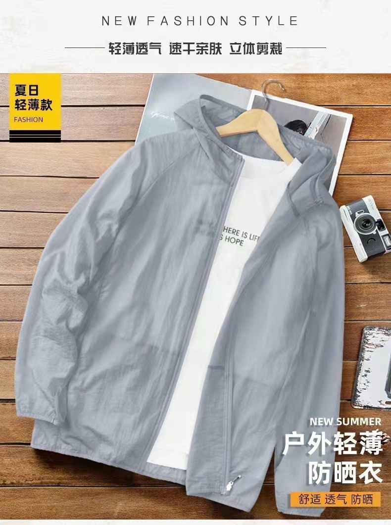 Солнцезащитная одежда для мужчин на лето, из ледяного шелка, дышащая, легкая и прохладная, свободного кроя, тонкая куртка, защита от ультрафиолета.