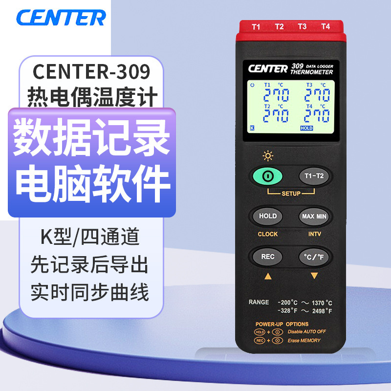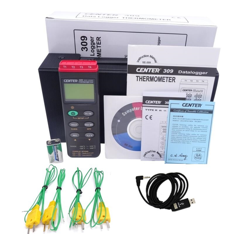 Тайваньский четырехканальный термометр Qunte CENTER-309, многоканальный прибор для измерения температуры, термометр для печи, термометр