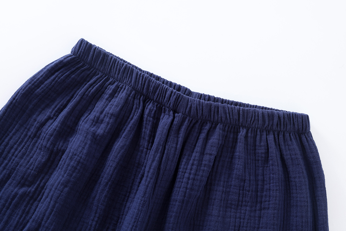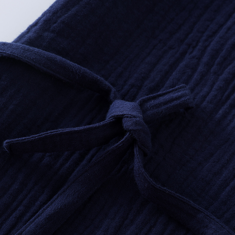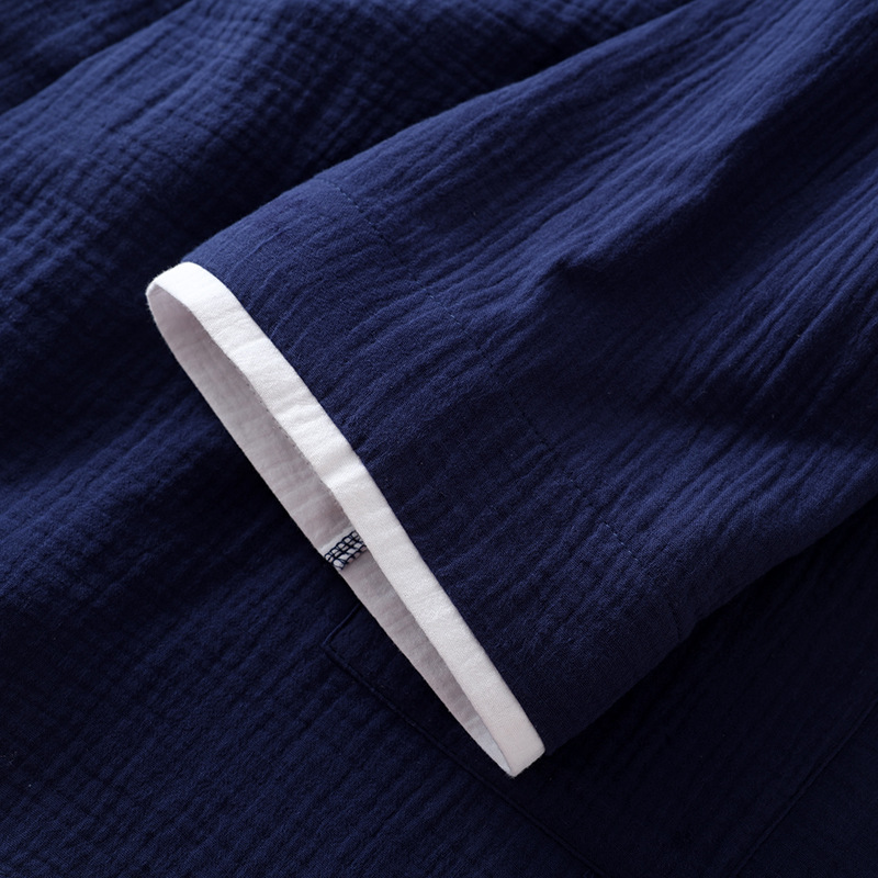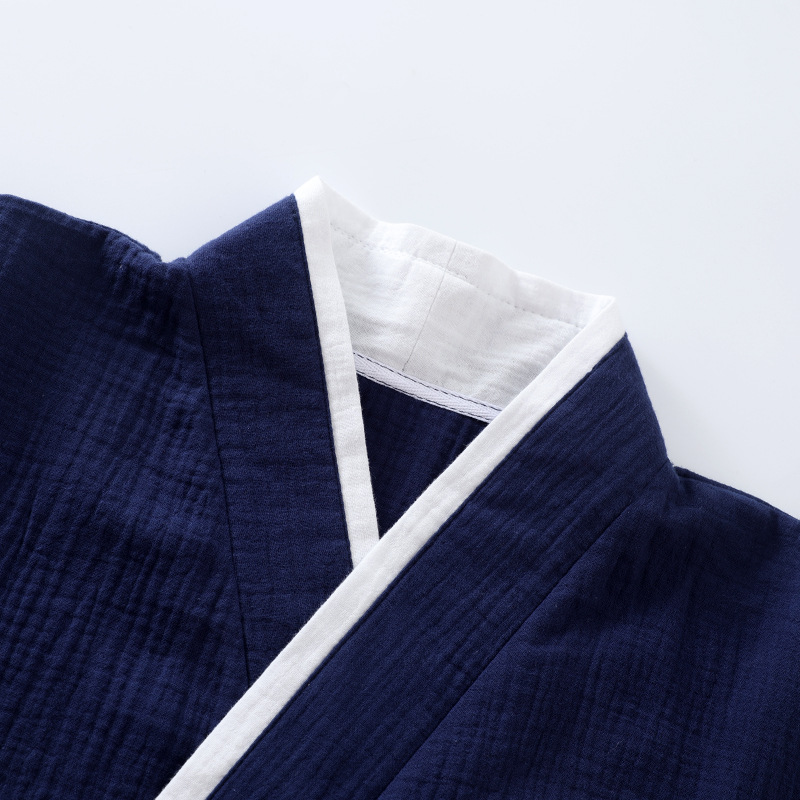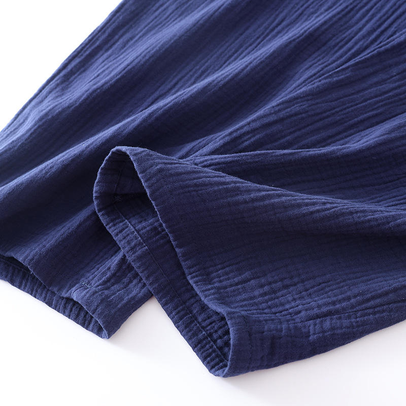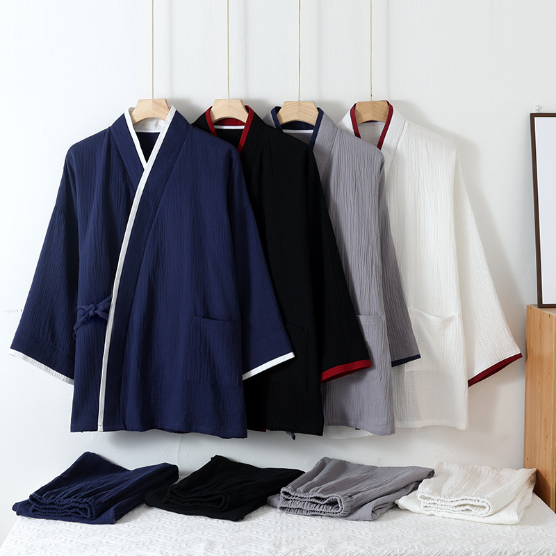 Креповый костюм для сауны из чистого хлопка в японском стиле, мужской костюм для сауны с длинными рукавами и длинными брюками, тонкое кимоно, комплект домашней одежды