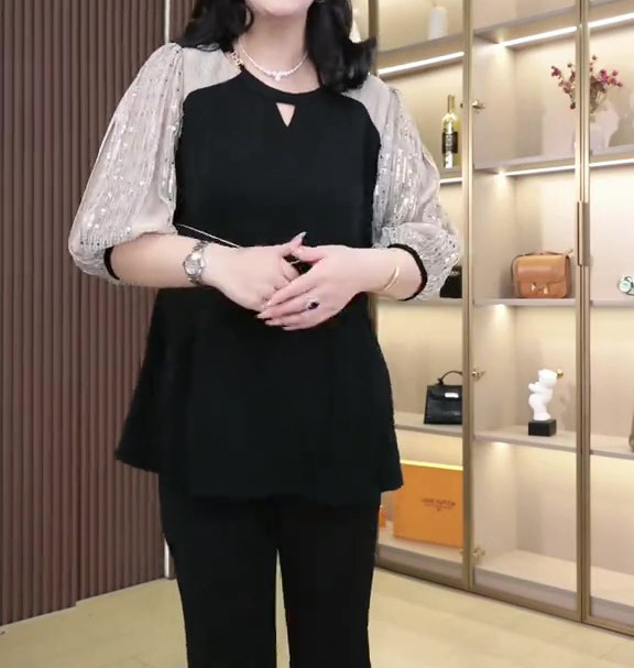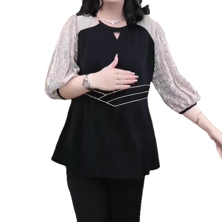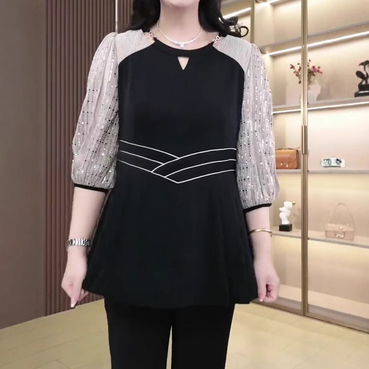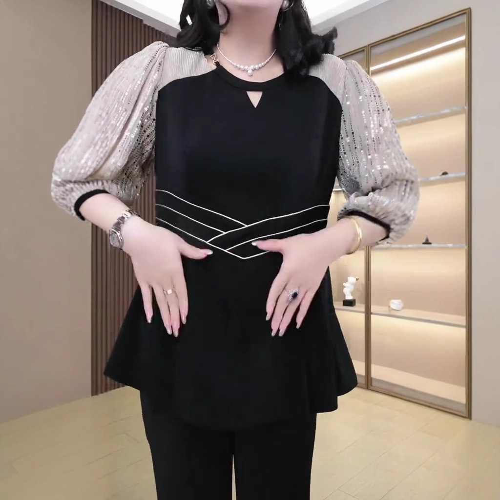 2025 летний новый легкий экстравагантный большой размер французский модный бисер с нижней шифоновая рубашка высокого класса плюс размер толстая женская одежда MM