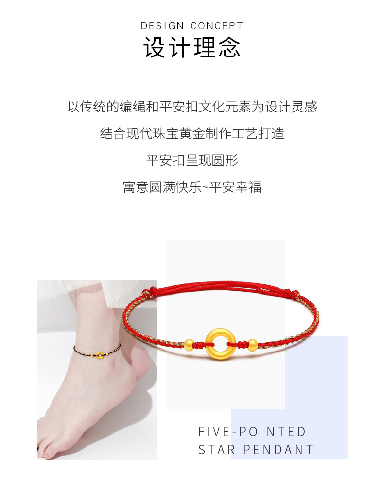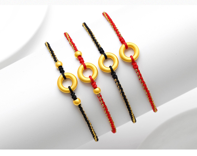 Ножной браслет с пряжкой из чистого золота [веревка из красного золота]; Ножной браслет с пряжкой из чистого золота [веревка из черного золота]; Ножной браслет с пряжкой из чистого золота + 2 золотые бусины [веревка из красного золота]; Ножной браслет с пряжкой из чистого золота + 2 золотые бусины [веревка из черного золота]