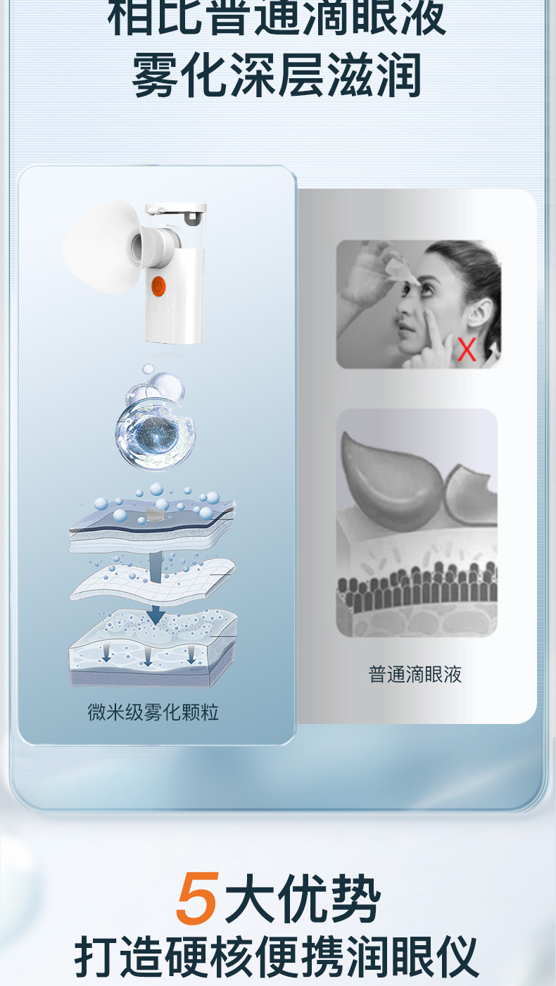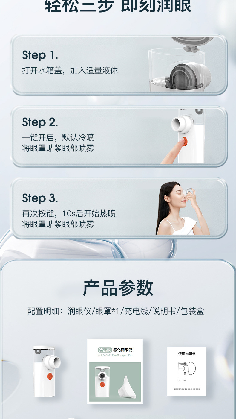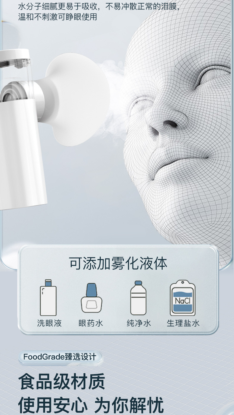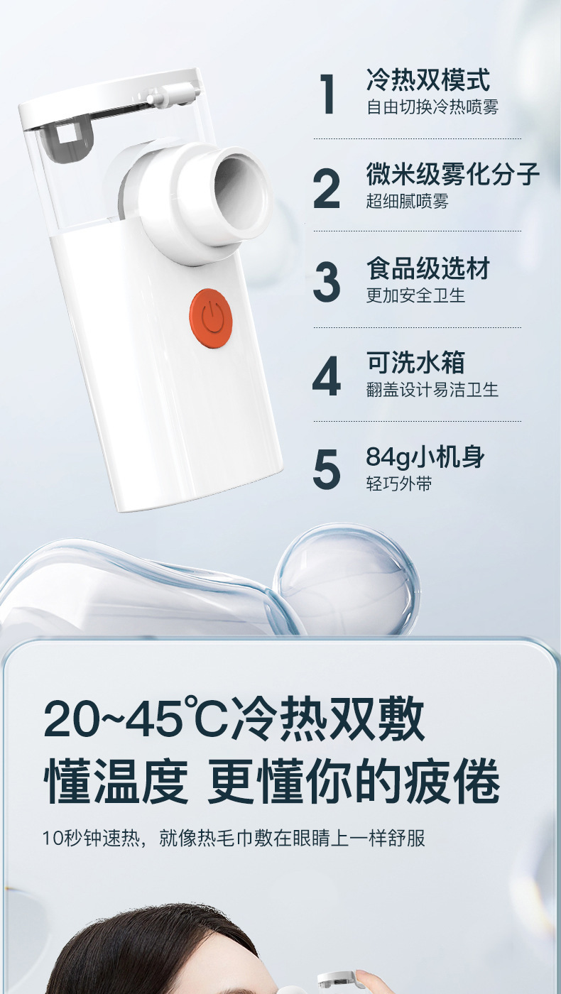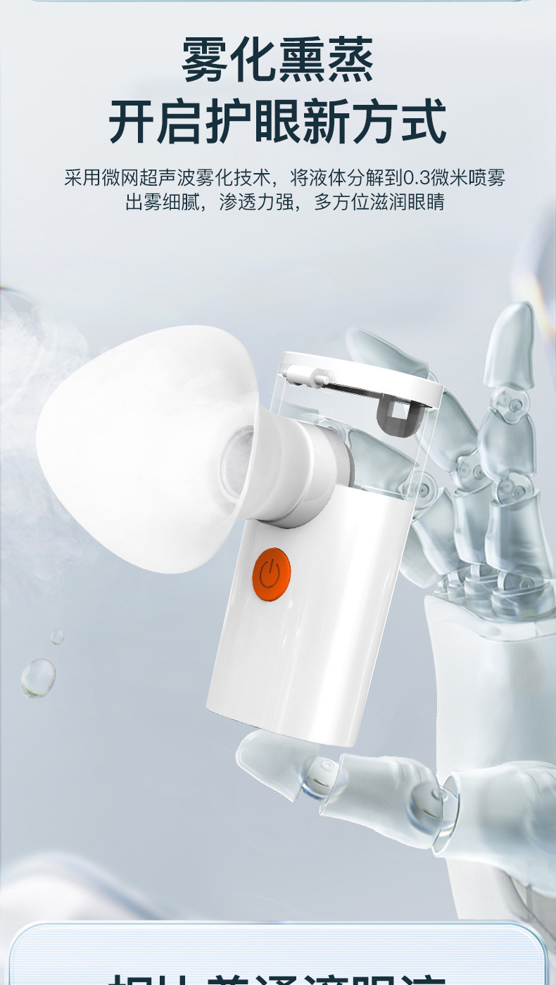 Ручной атомизер для горячих компрессов, увлажняющий глаза, для снятия усталости и сухости глаз, портативное устройство для нано-увлажнения глаз.