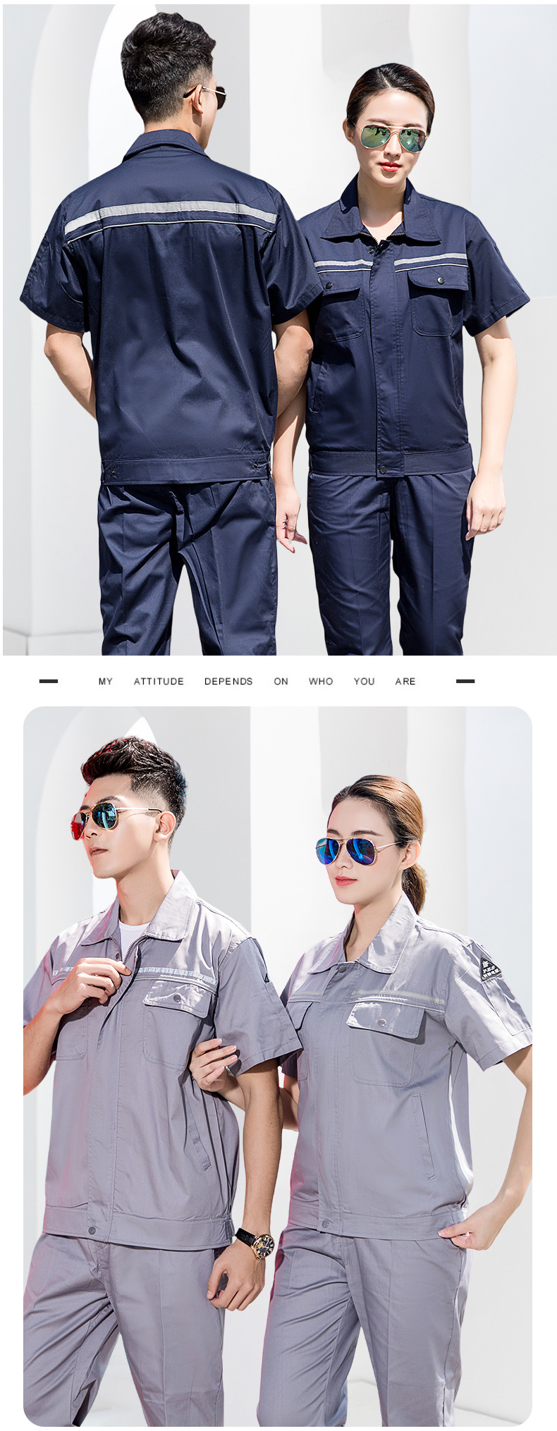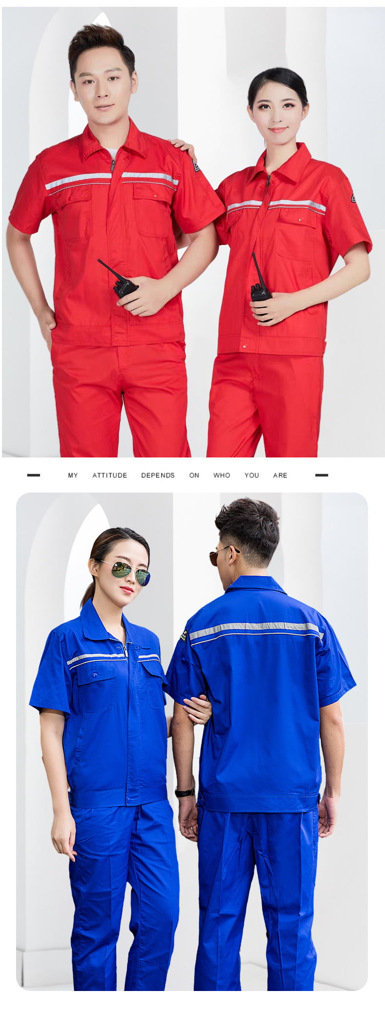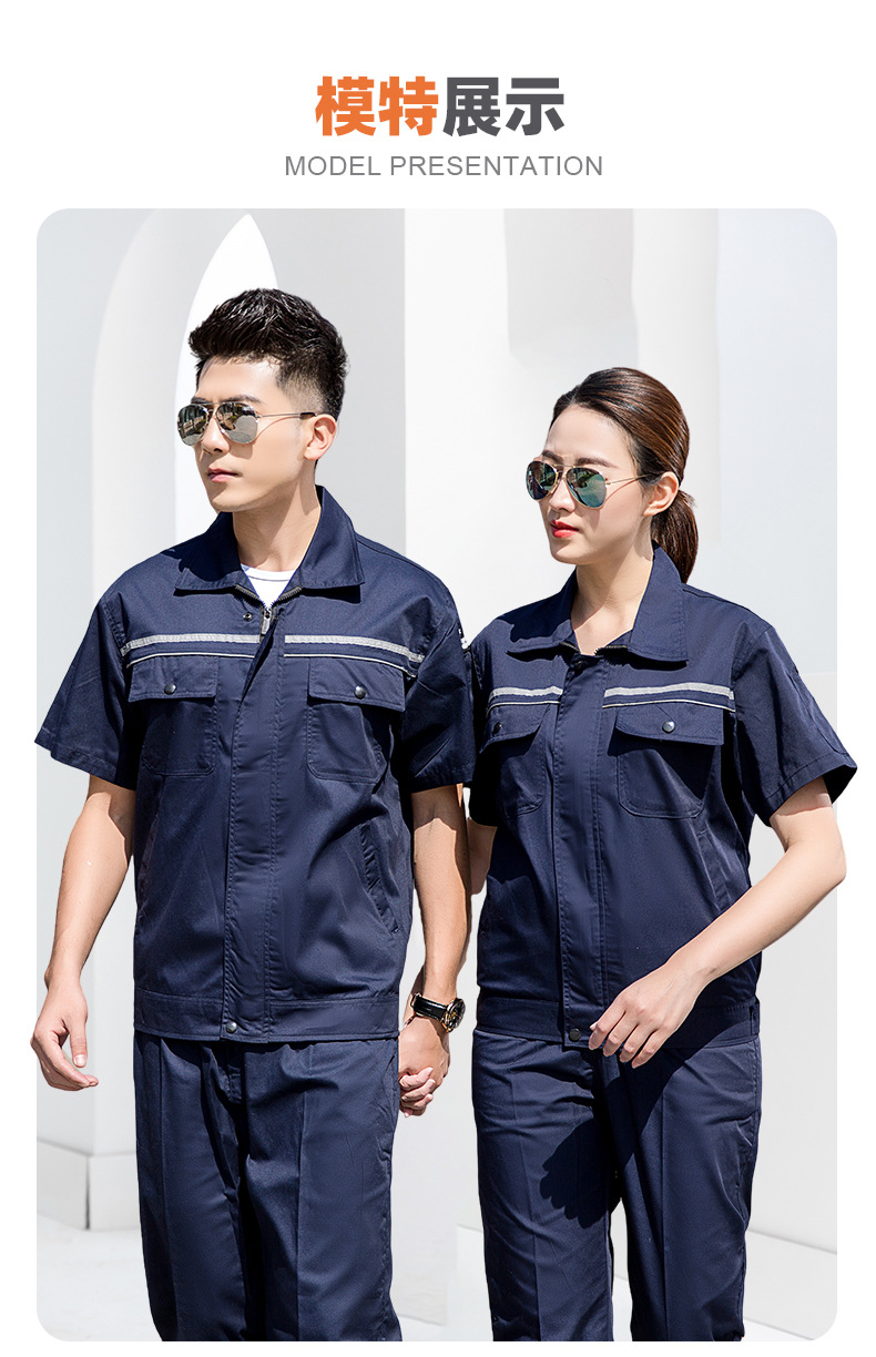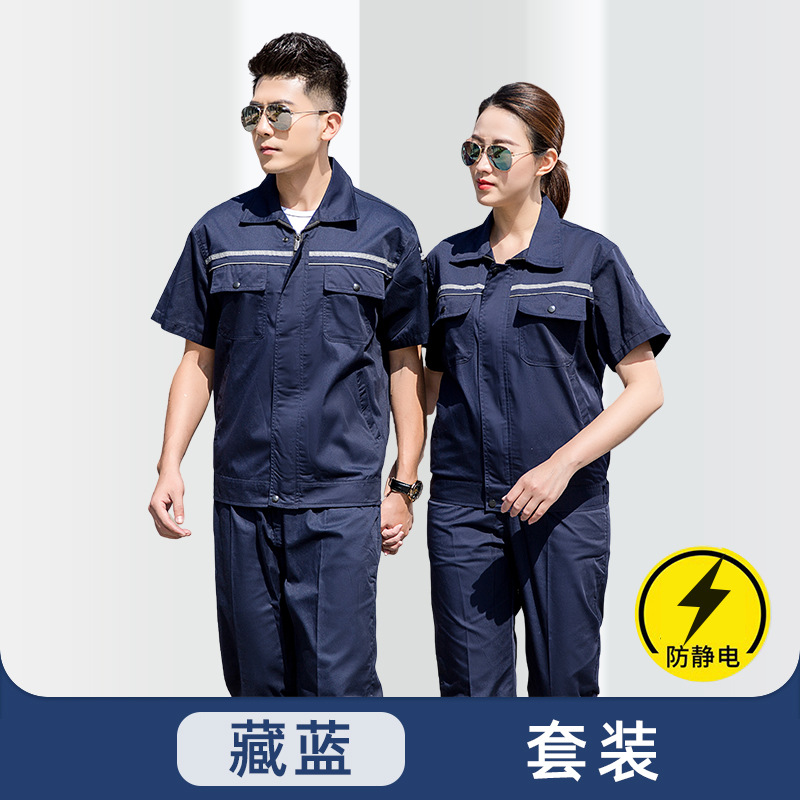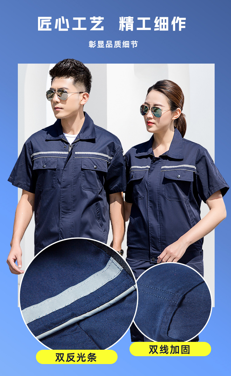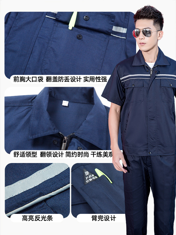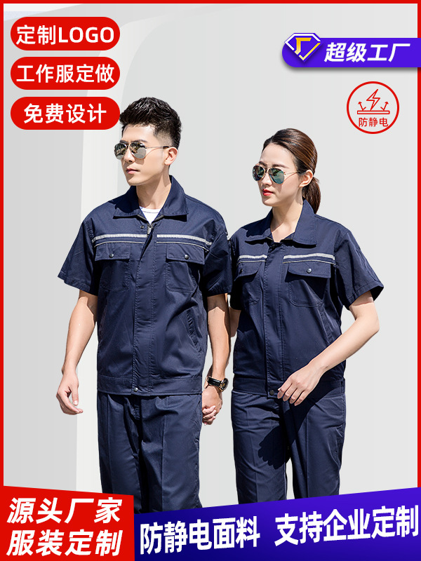 工作服耐磨耐脏夏季短袖男装反光条劳保服定制透气工厂防静电工装