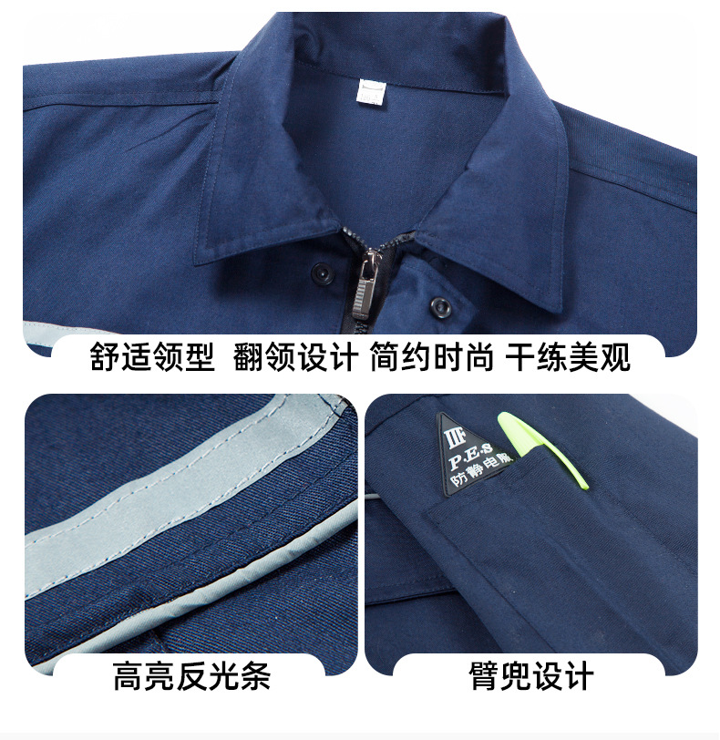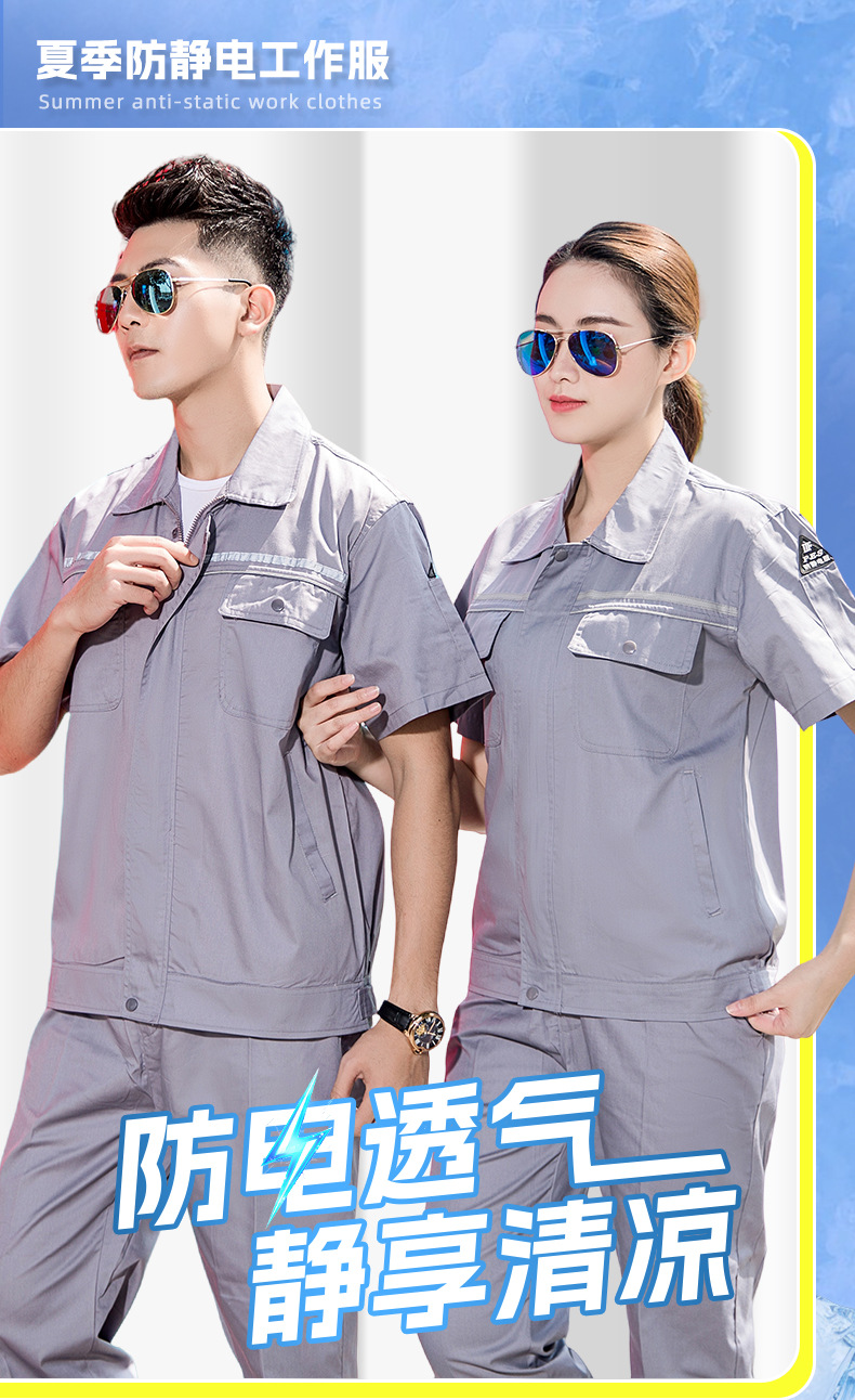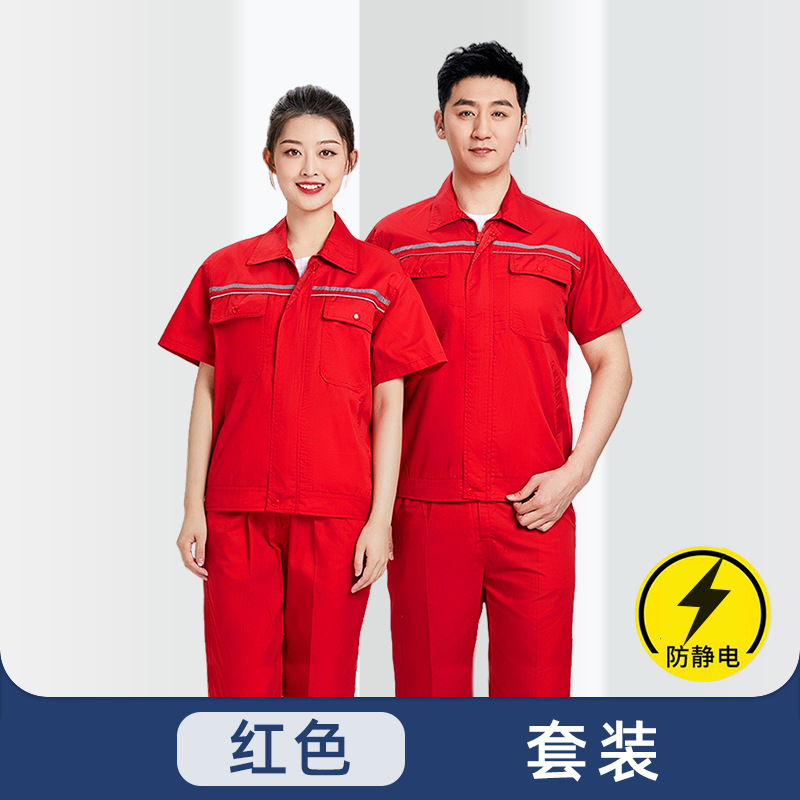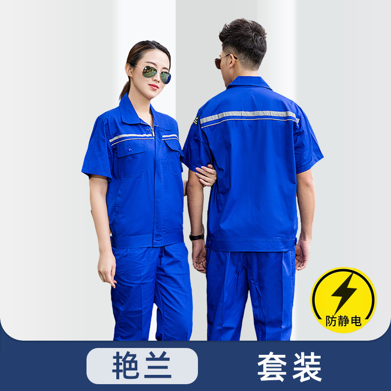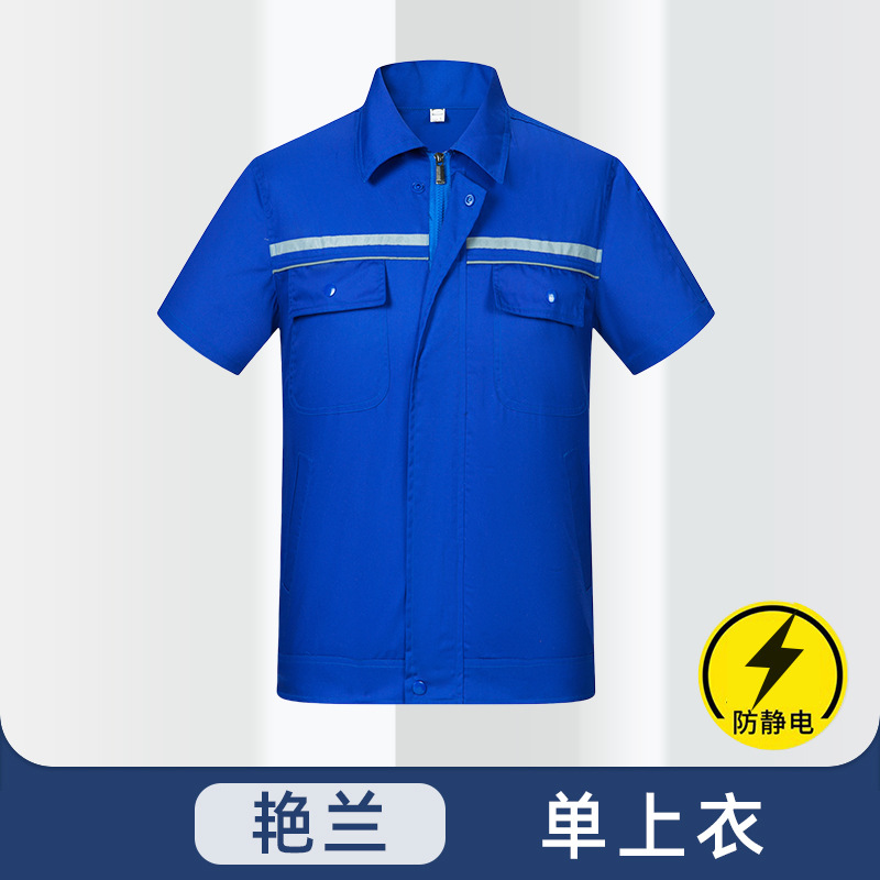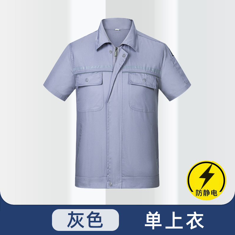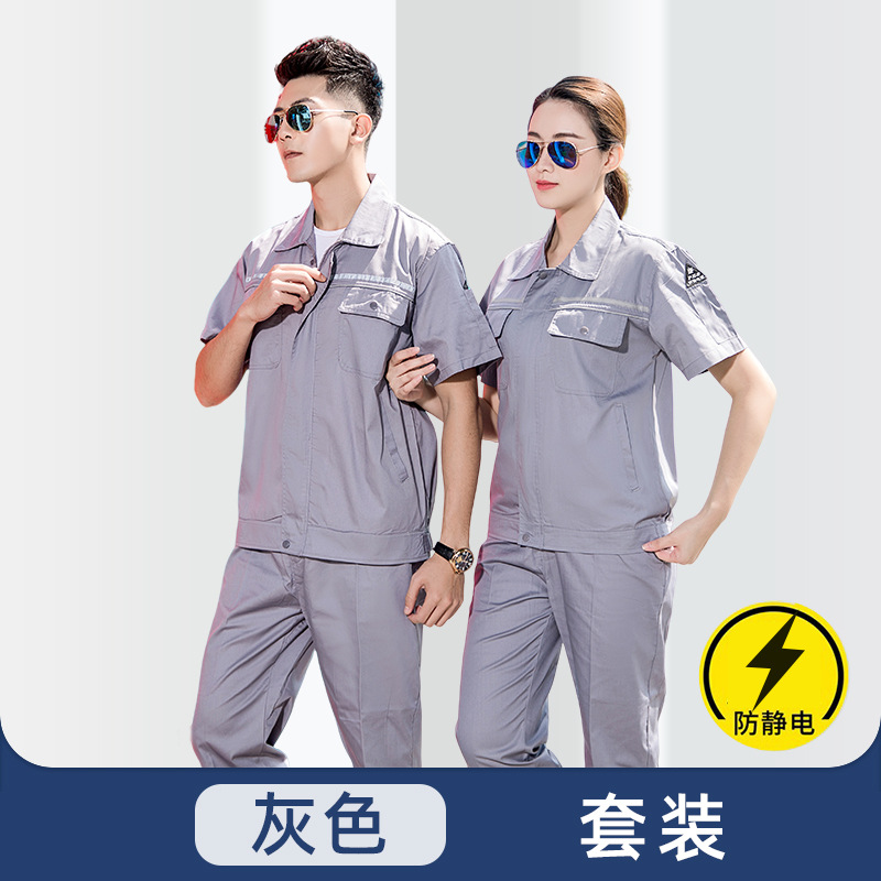 工作服耐磨耐脏夏季短袖男装反光条劳保服定制透气工厂防静电工装