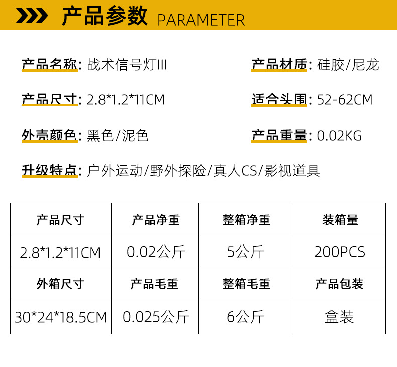 Модернизированный семицветный тактический шлем, меняющий цвет, сигнальный светильник для жевательной резинки, водонепроницаемый, сильный свет, стробоскоп для выживания на липучке