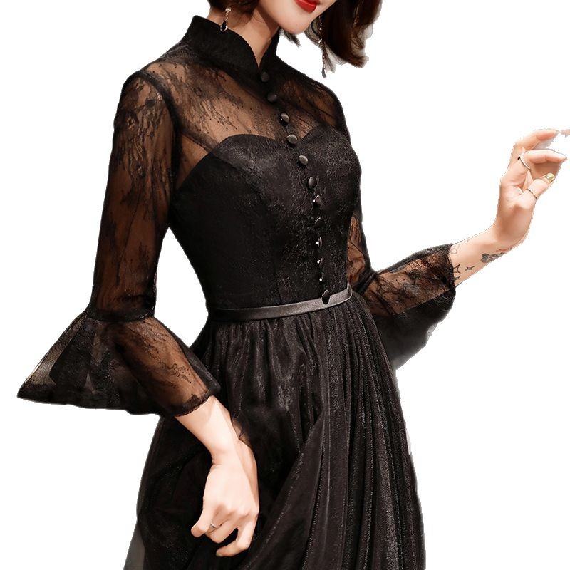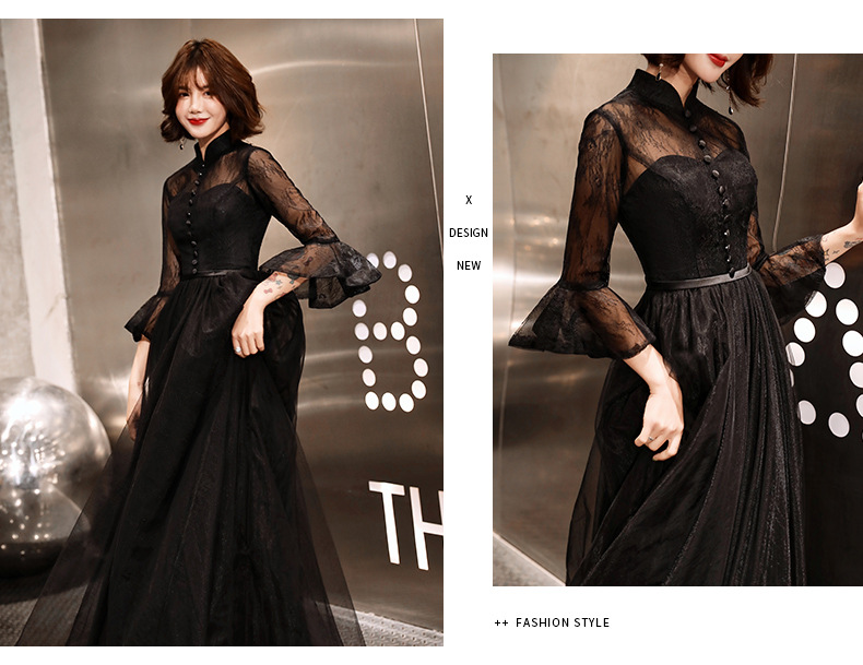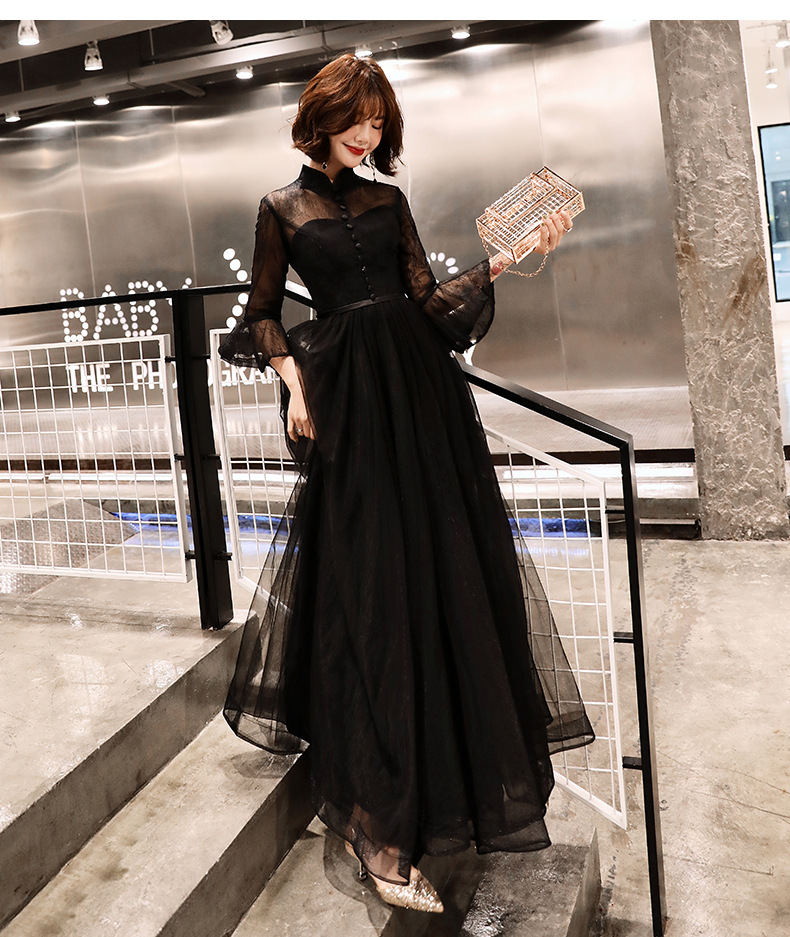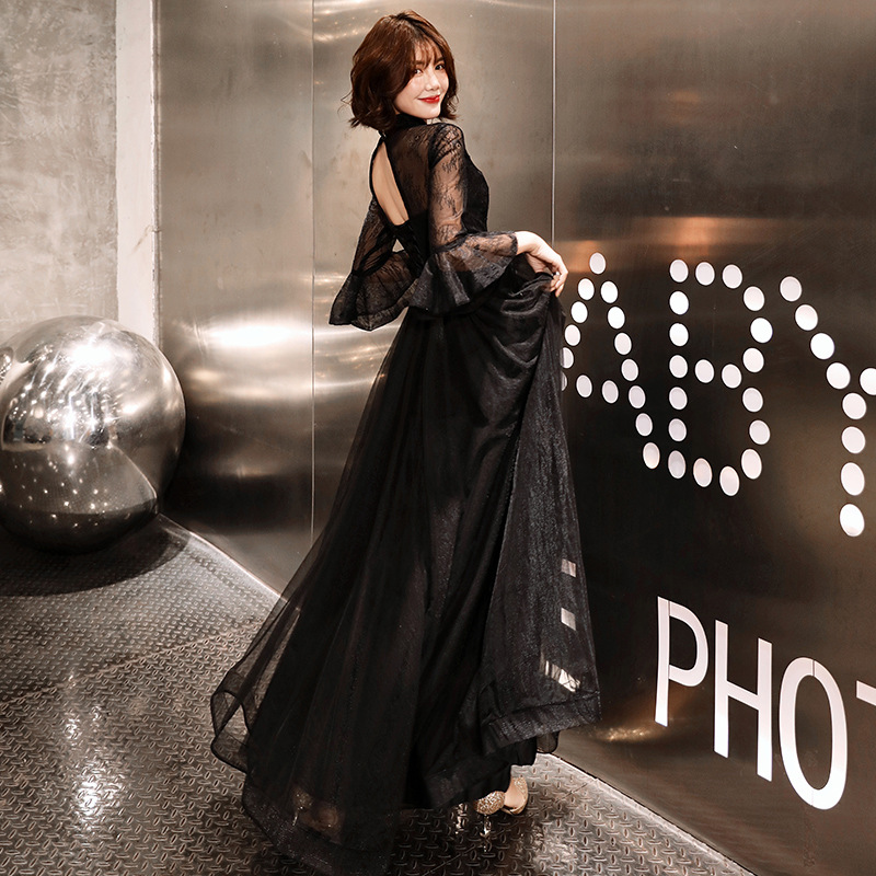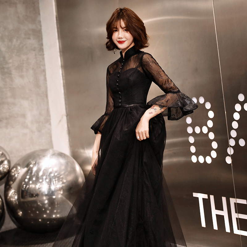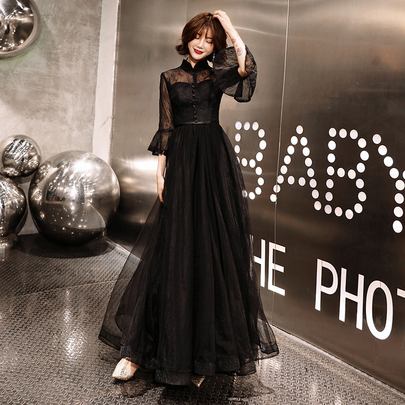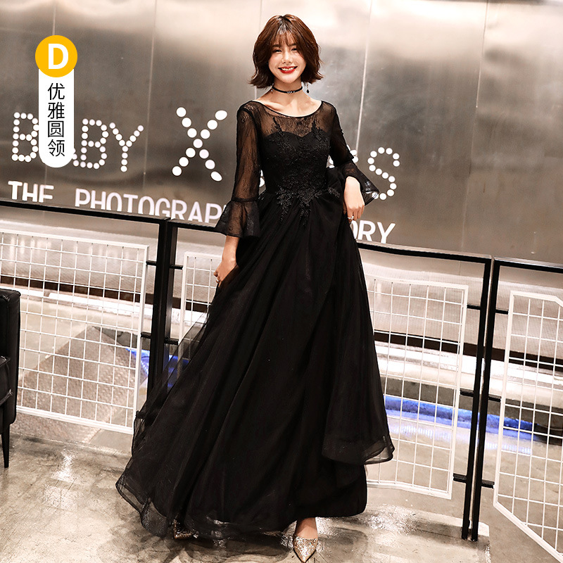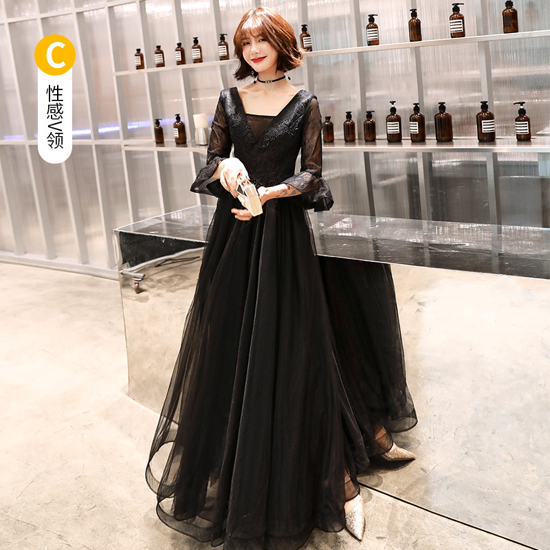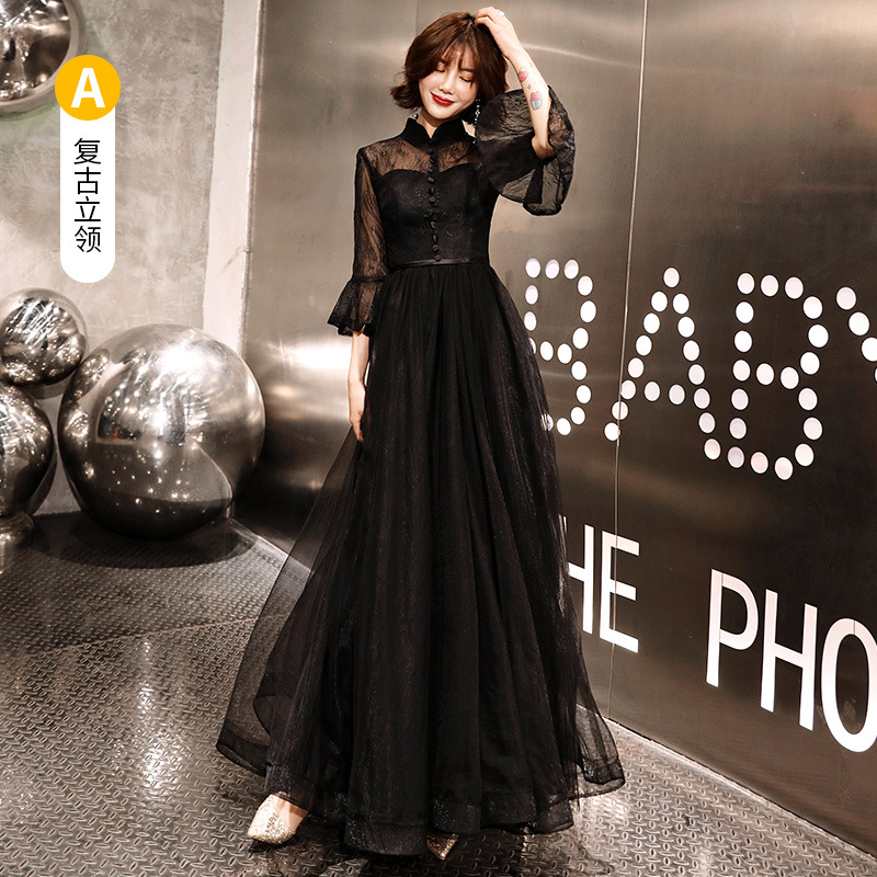 Черное вечернее платье для женщин 2025, новое банкетное платье для вечеринки, элегантное длинное платье для ежегодного собрания или ведущей