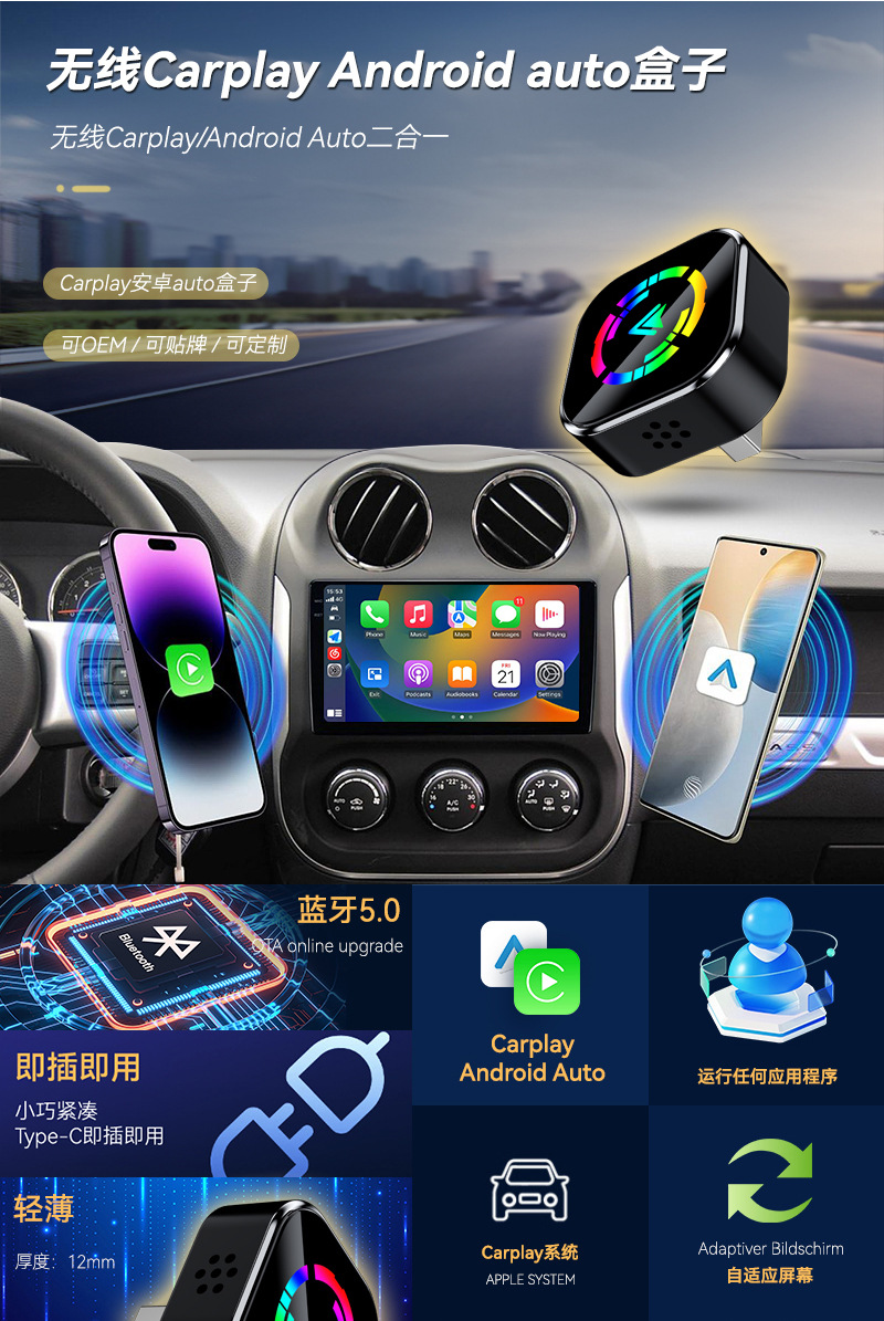 Популярный модуль CarPlay 2-в-1, умный портативный автомобильный интерконнектор, Android Auto CarPlay бокс