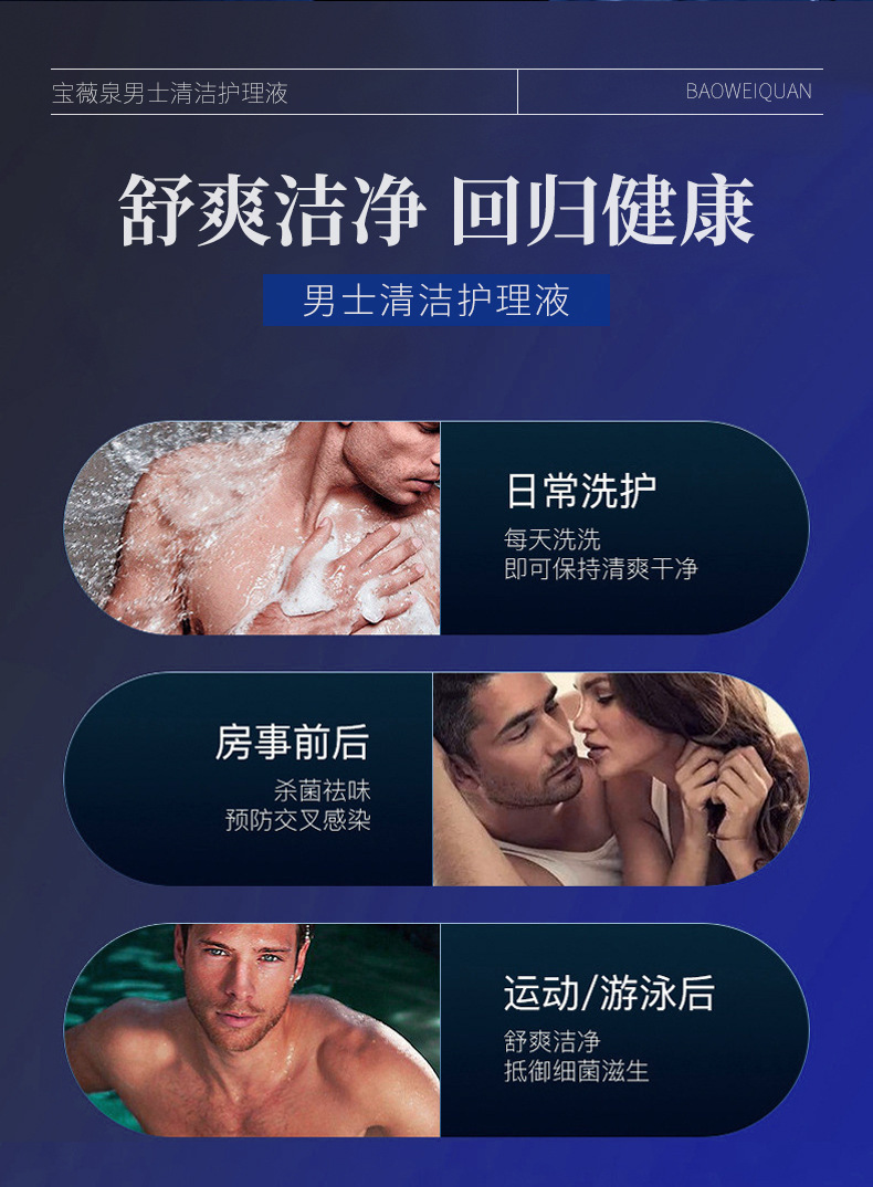 Средство для мужской гигиены Baoweiquan — это продукт для личной гигиены мужчин, предназначенное для очищения и дезинфекции интимных зон, устранения запаха и ежедневного очищения. Доступно для дропшиппинга.