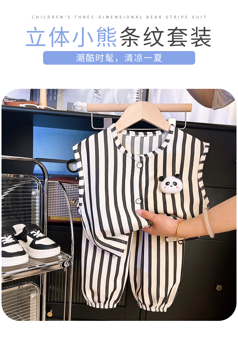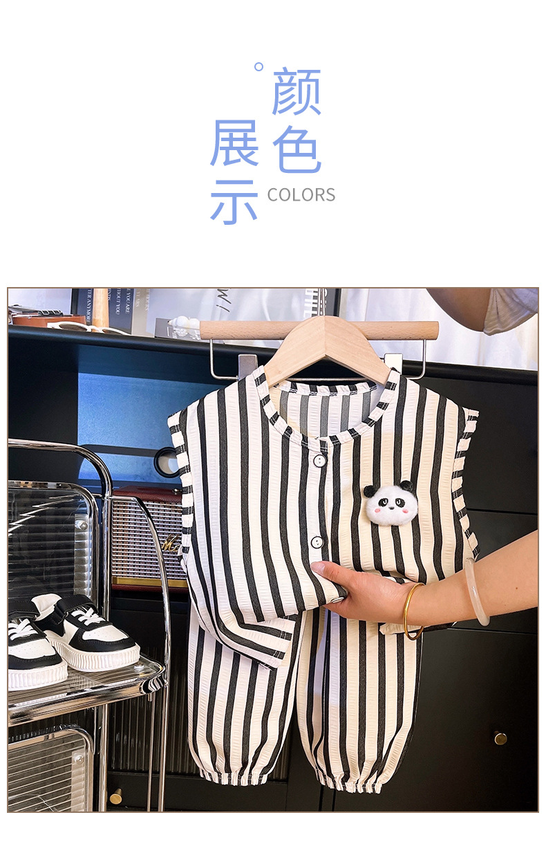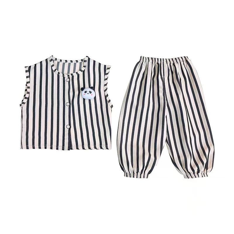 Комплект жилета для детей летом свободная для мальчиков и девочек брюки средние детские спортивные два комплекта в полоску оптом