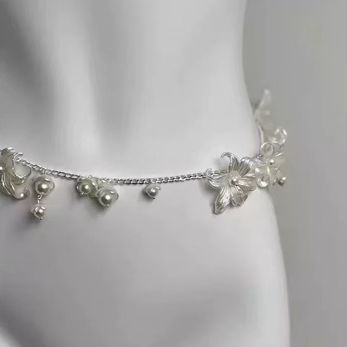 Цепочка на талию с жемчугом и цветком лилии