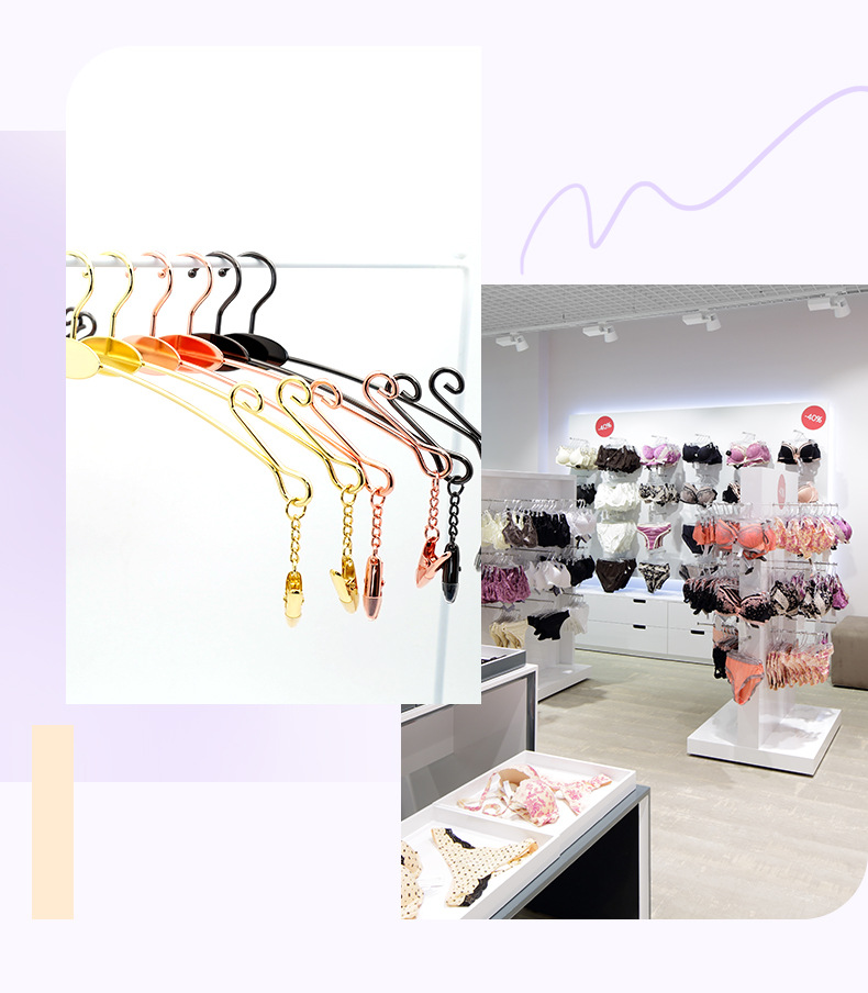 Поставка металлической вешалки для нижнего белья, вешалки для нижнего белья, вешалки для магазина нижнего белья, зажима для бюстгальтера, зажима для нижнего белья, витого зажима для нижнего белья из розового золота.