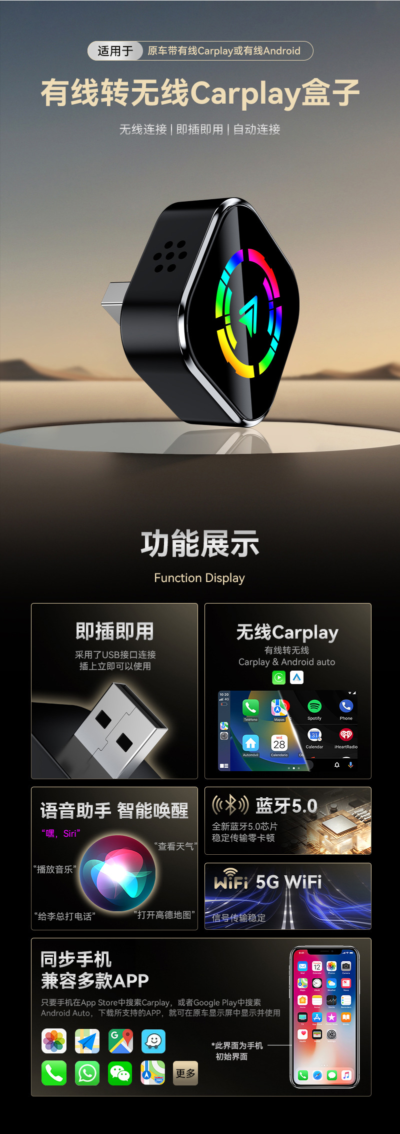 Популярный адаптер для подключения автомобиля к смартфону, умный адаптер 2-в-1 для CarPlay, Android Auto и CarPlay